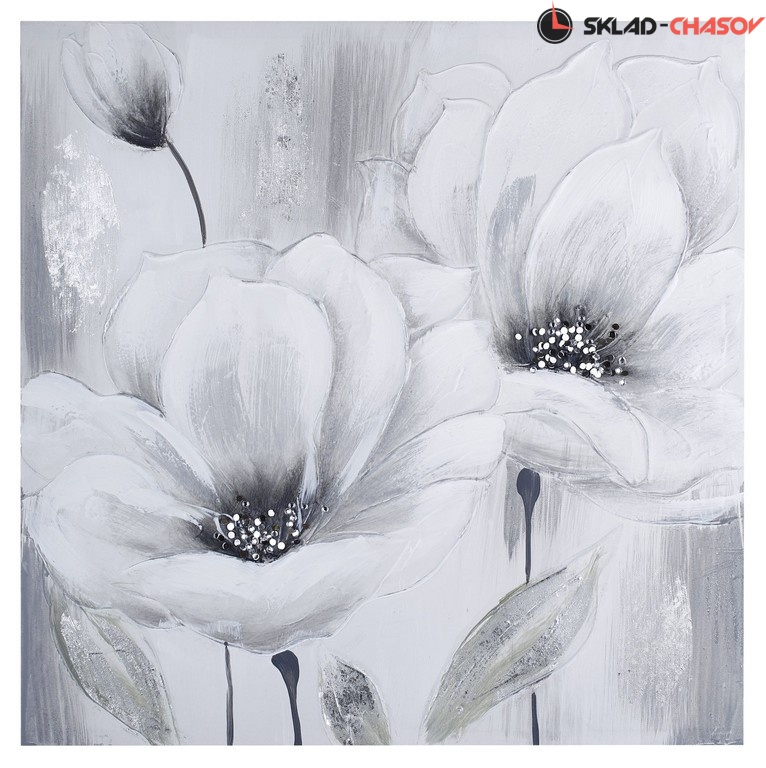 Фактурная картина в нежных пастельных тонах с цветочными мотивами. Картина выполнена путем нанесения на холст декоративной шпатлевки и страз. Размеры 60 x 60 x 3 см