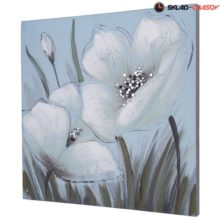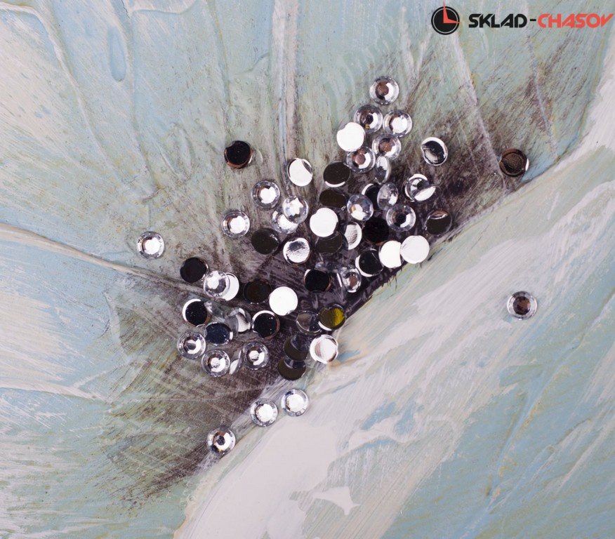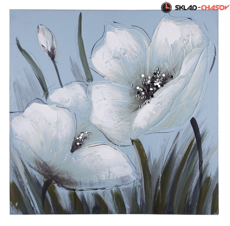 Фактурная картина в нежных пастельных тонах с цветочными мотивами. Картина выполнена путем нанесения на холст декоративной шпатлевки и страз. Размеры 40 x 40 x 3 см