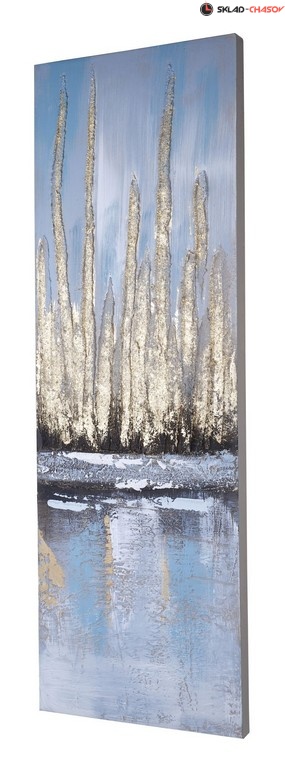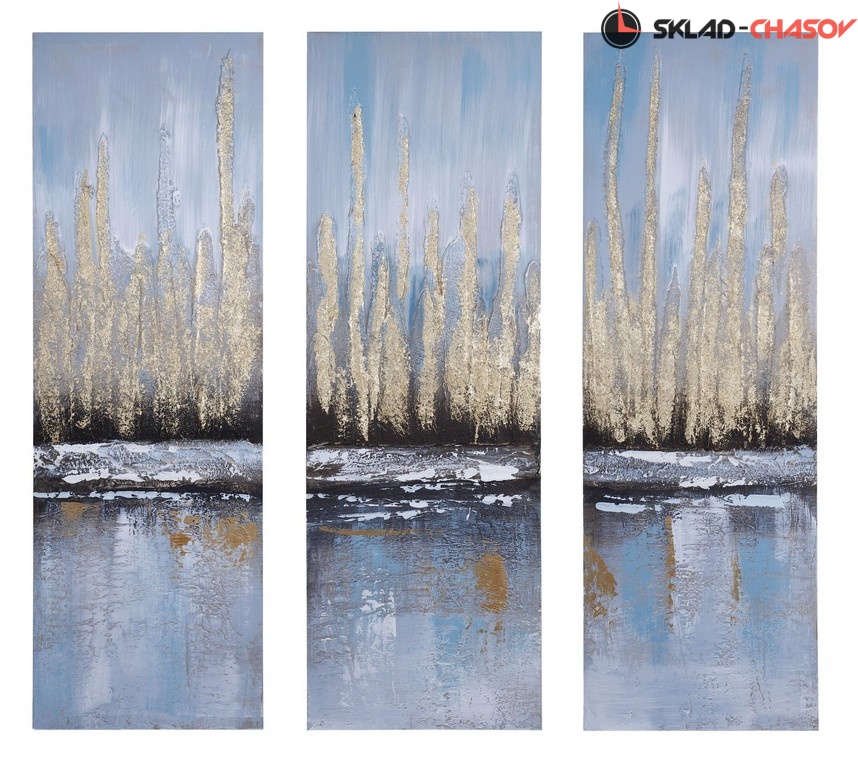 Триптих из трех фактурных картин в нежных, пастельных тонах. Картины выполнены путем нанесения на холст декоративной шпатлевки и глиттера. Размеры 90 x 30 x 3 см