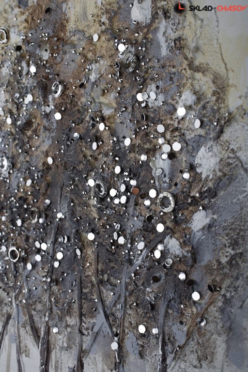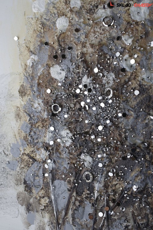 Фактурная картина в нежных, пастельных тонах. Картина выполнена путем нанесения на холст декоративной шпатлевки, страз и глиттера. Размеры 80 x 80 x 3 см
