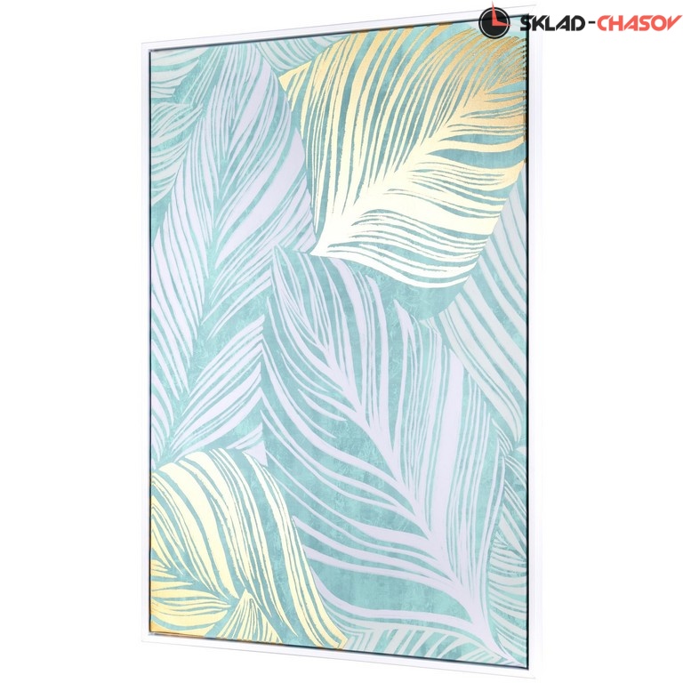 Интерьерное панно. Качественный принт на матовом холсте, декорирование золотой фольгой, подрамник из массива дерева, объемная рама белого цвета. Размеры 90 x 60 x 4 см