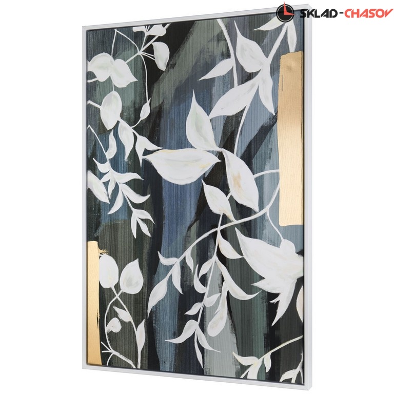 Интерьерное панно. Качественный принт на матовом холсте, декорирование золотой фольгой, подрамник из массива дерева, объемная рама белого цвета. Размеры 90 x 60 x 4 см