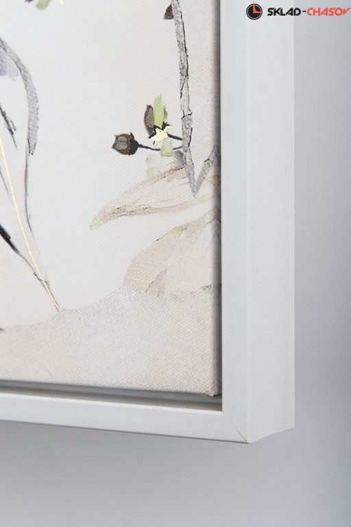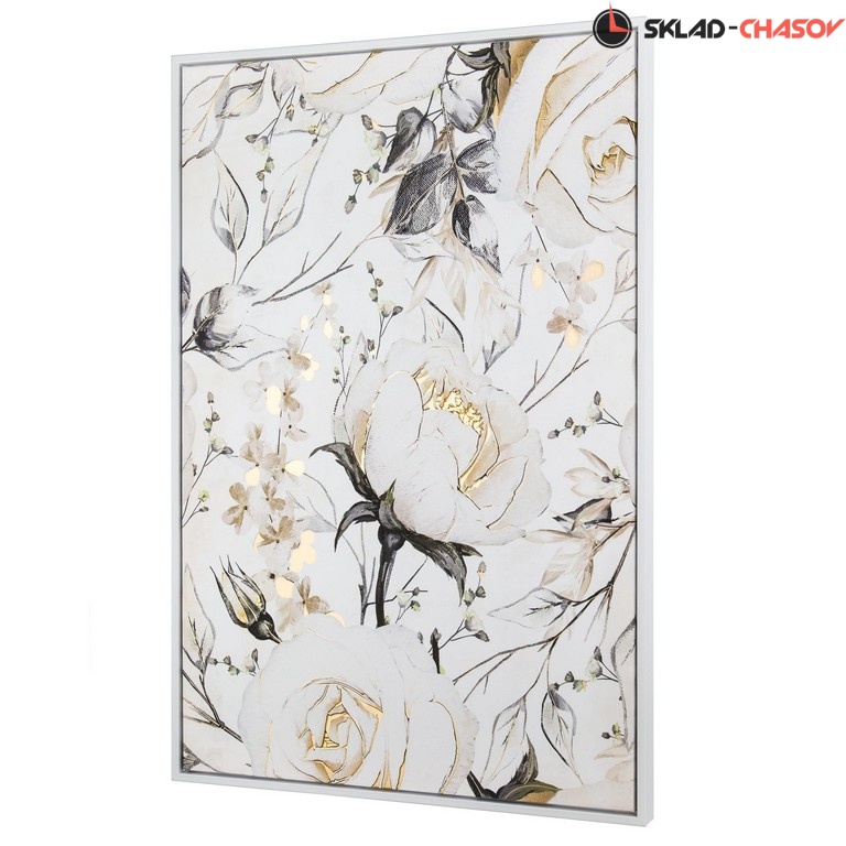 Интерьерное панно. Качественный принт на матовом холсте, декорирование золотой фольгой, подрамник из массива дерева, объемная рама белого цвета. Размеры 90 x 60 x 4 см