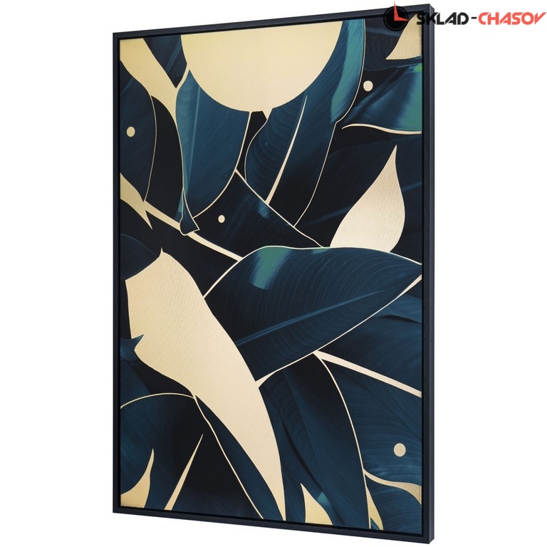 Интерьерное панно. Качественный принт на матовом холсте, декорирование золотой фольгой, подрамник из массива дерева, объемная рама черного цвета. Размеры 90 x 60 x 4 см