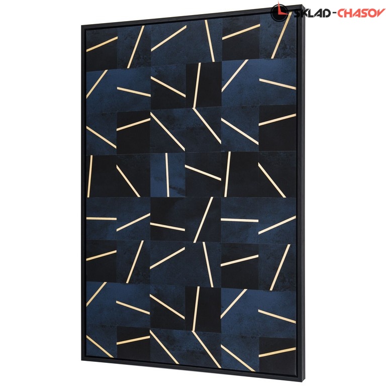 Интерьерное панно. Качественный принт на матовом холсте, декорирование золотой фольгой, подрамник из массива дерева, объемная рама черного цвета. Размеры 90 x 60 x 4 см