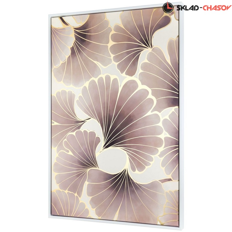 Интерьерное панно. Качественный принт на матовом холсте, декорирование золотой фольгой, подрамник из массива дерева, объемная рама белого цвета. Размеры 90 x 60 x 4 см