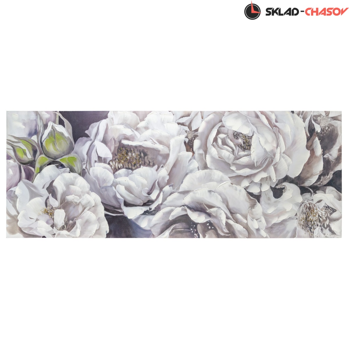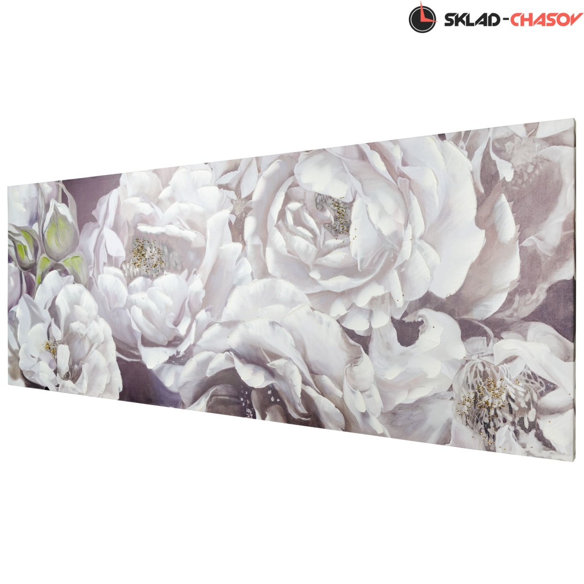 Картина выполнена путем печати на холсте и нанесением декоративной шпатлевки и страз.