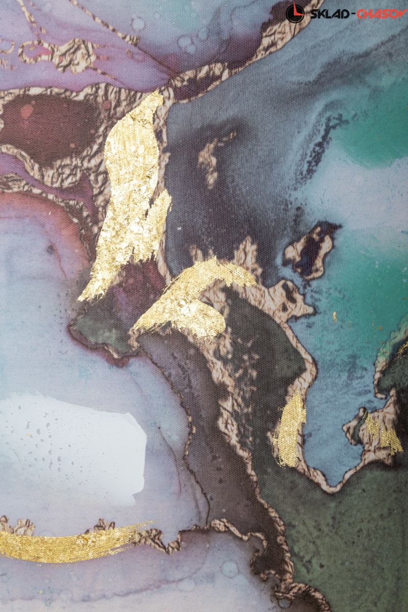 Картина выполнена путем печати на холсте и нанесения золотистой фольги.