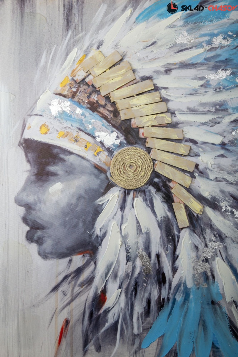 Фактурная картина с портетом индианки.