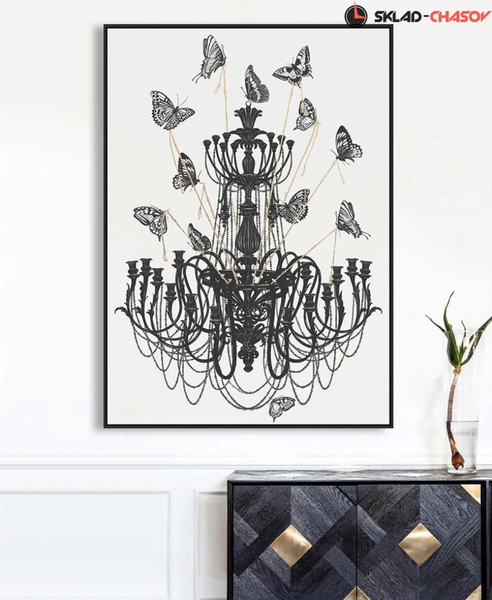 Интерьерное панно. Качественный принт на матовом холсте, декорирование золотой фольгой, подрамник из массива дерева, объемная рама черного цвета. Размеры 90 x 60 x 4 см