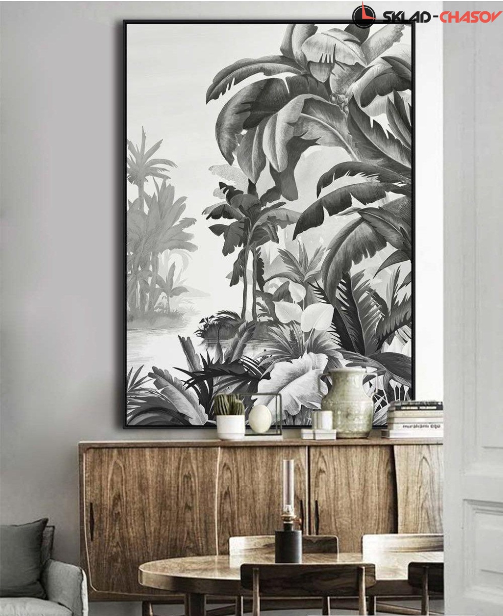 Интерьерное панно. Качественный принт на матовом холсте, подрамник из массива дерева, объемная рама черного цвета. Размеры 90 x 60 x 4 см