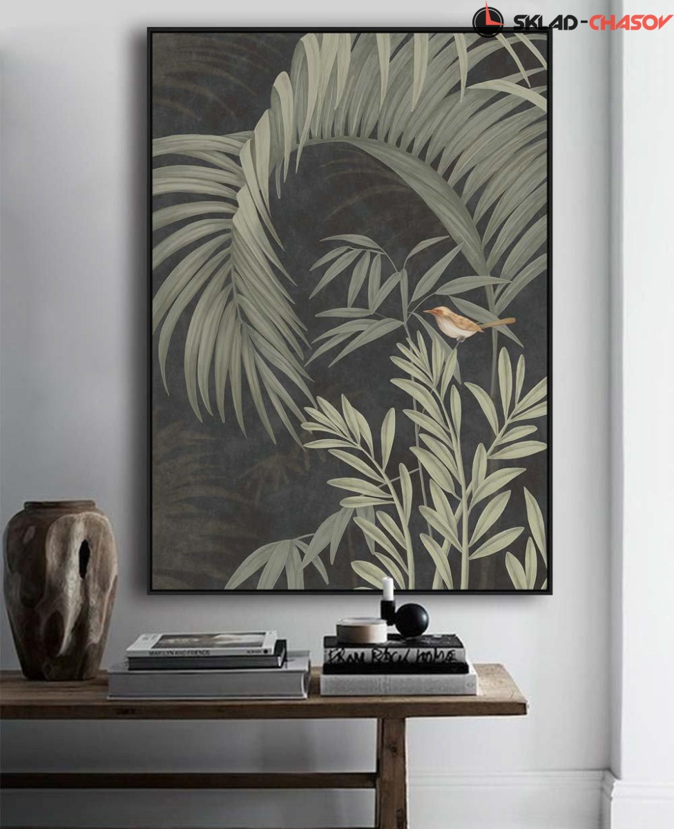 Интерьерное панно. Качественный принт на матовом холсте, подрамник из массива дерева, объемная рама черного цвета. Размеры 90 x 60 x 4 см