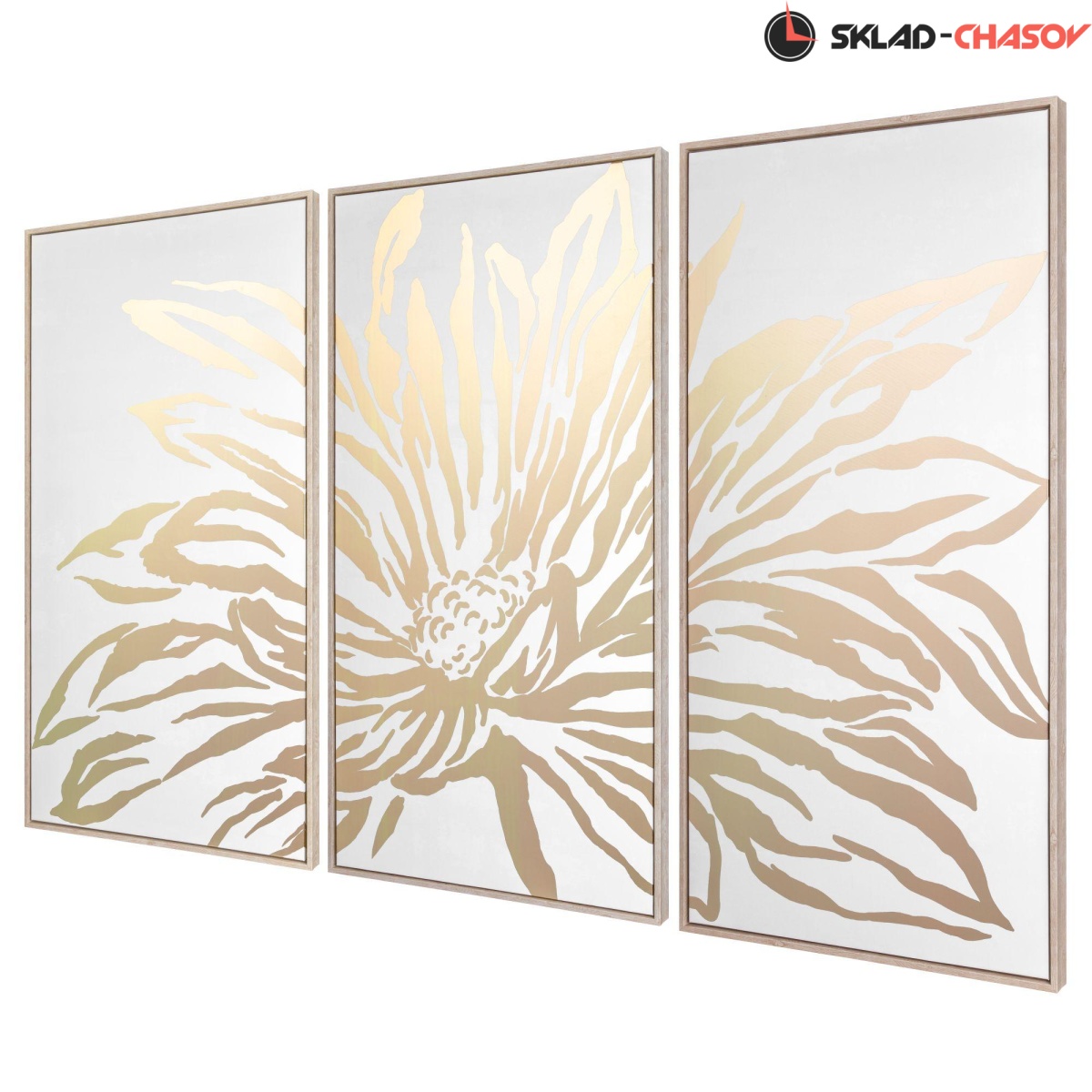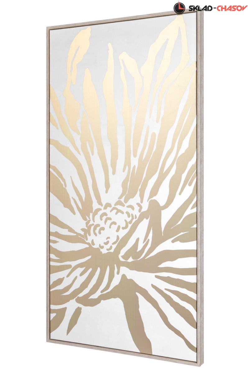 Качественный принт на матовом холсте, декорирование золотой фольгой, подрамник из массива дерева, объемная рама дубового цвета.