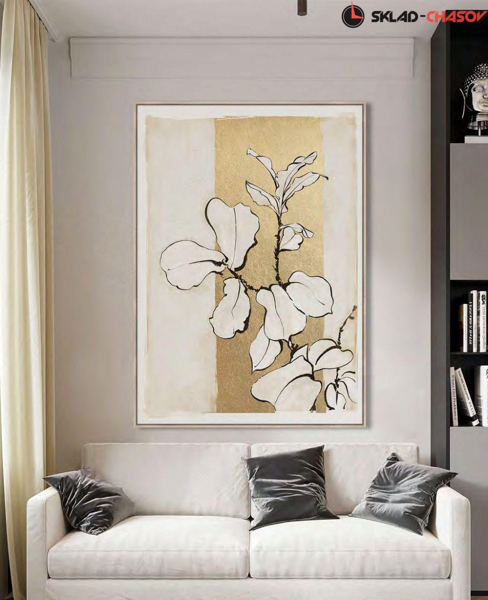 Качественный принт на матовом холсте с акцентами из золотой фольги.
