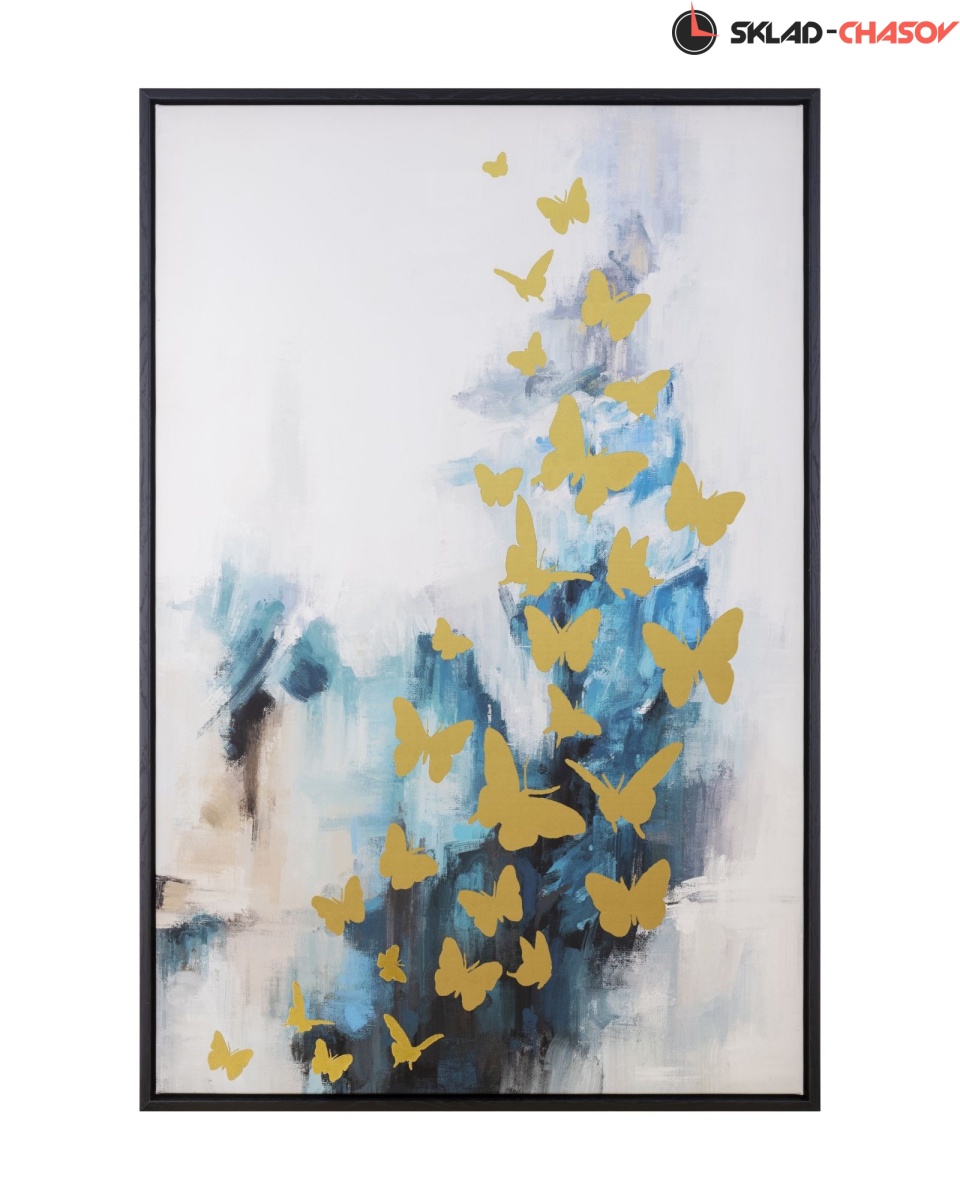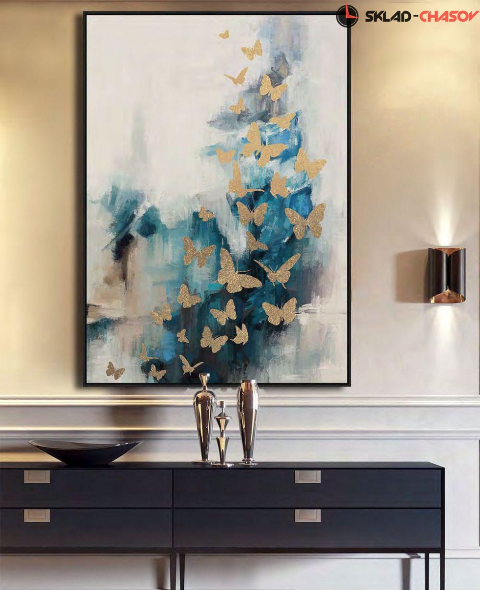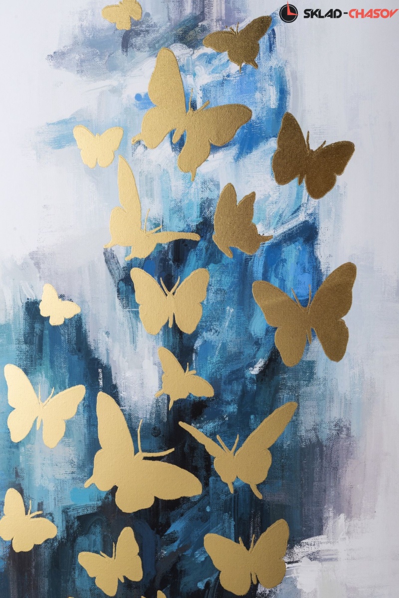 Интерьерное панно. Качественный принт на матовом холсте. Бабочки выполнены из золотой фольги.