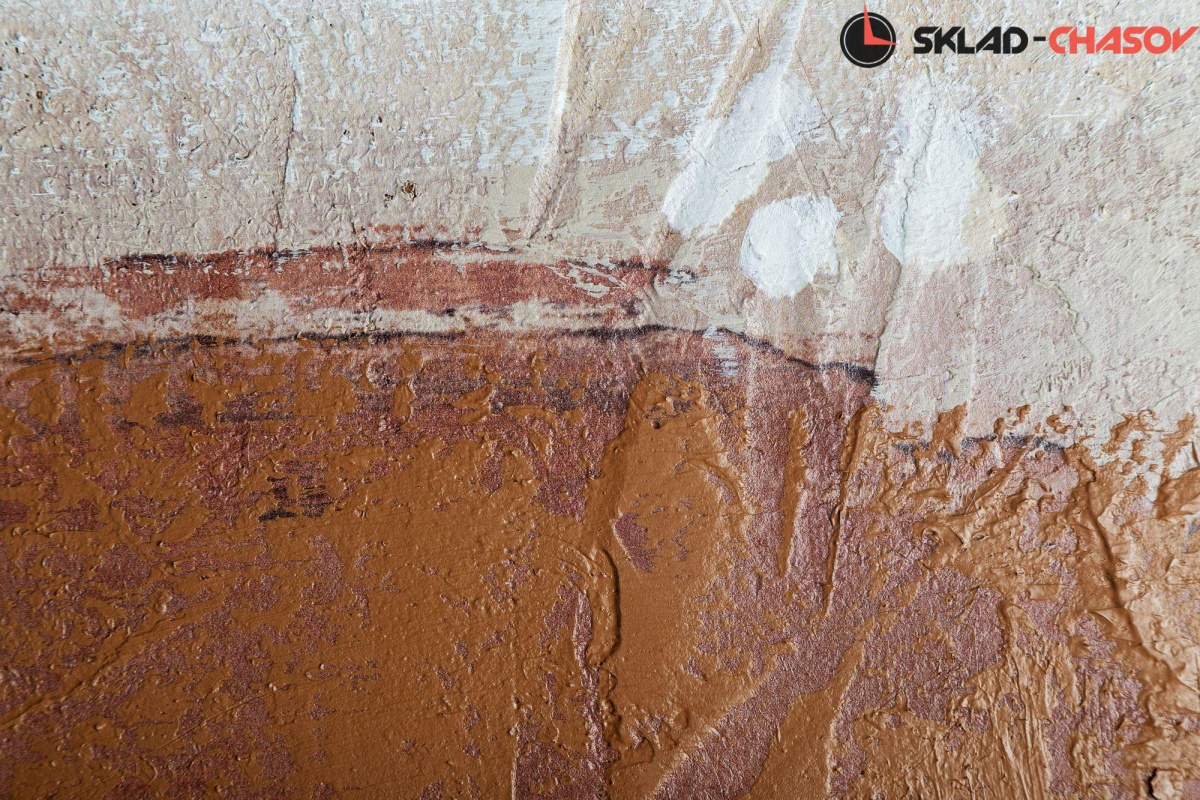 Натуральный холст, на который вручную нанесена и росписана декоративная шпатлевка.