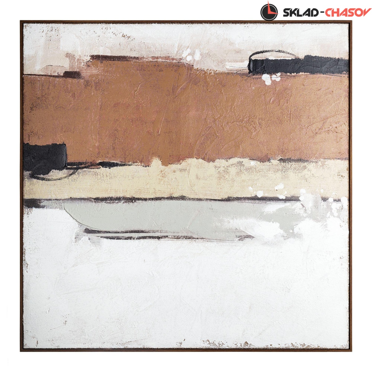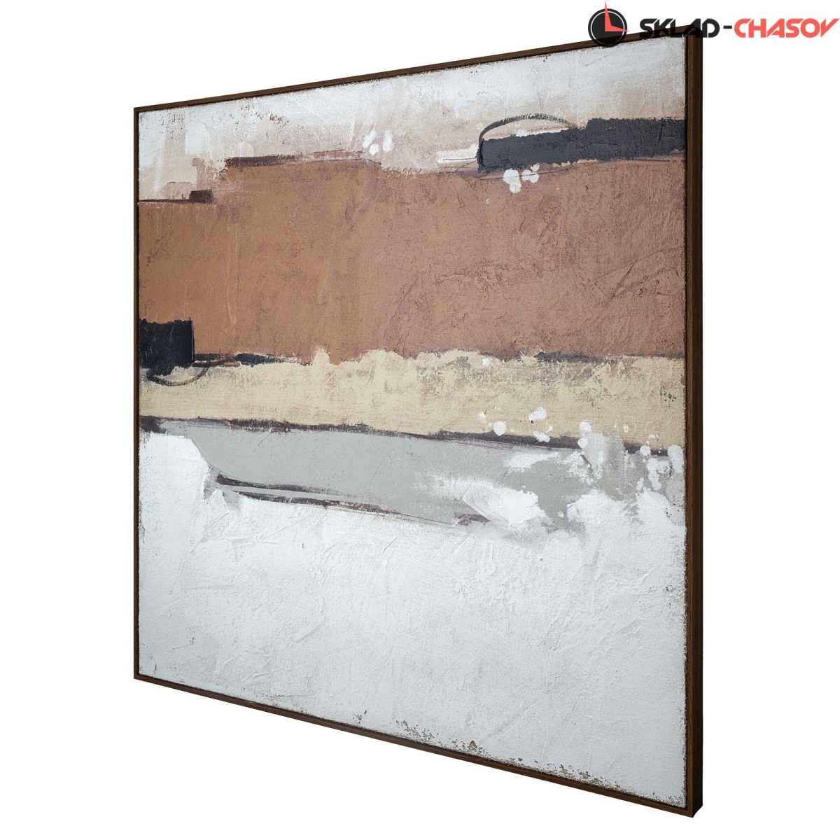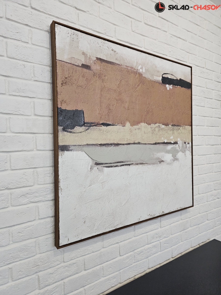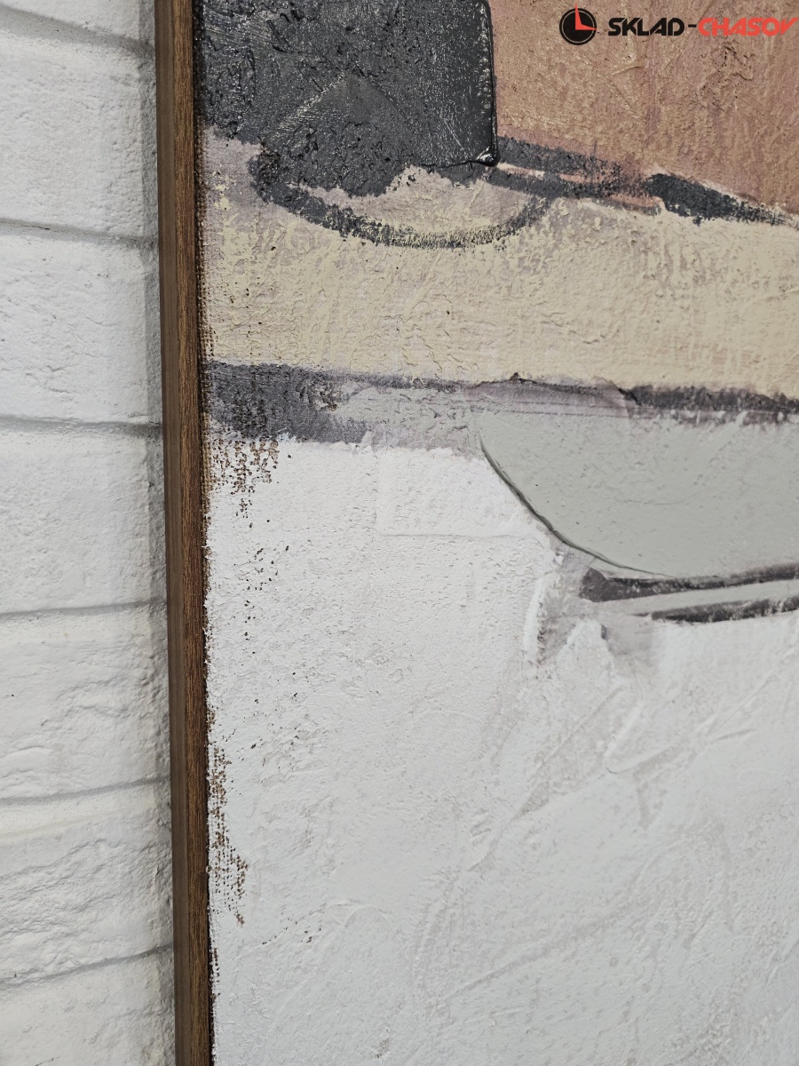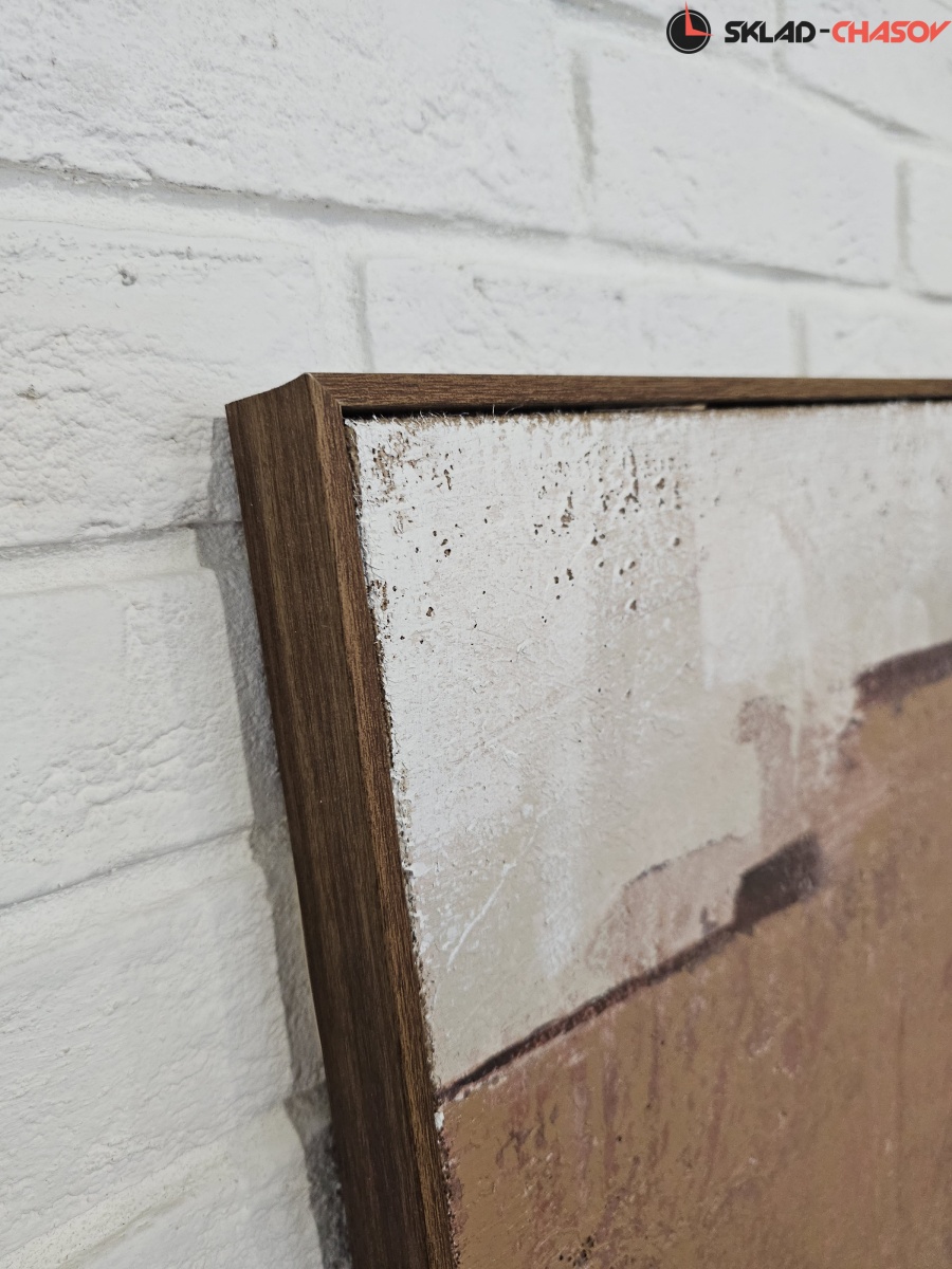 Подрамник из массива дерева, объемная пластиковая рама темно-коричневого цвета с фактурой дерева.