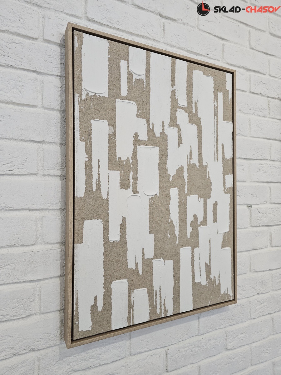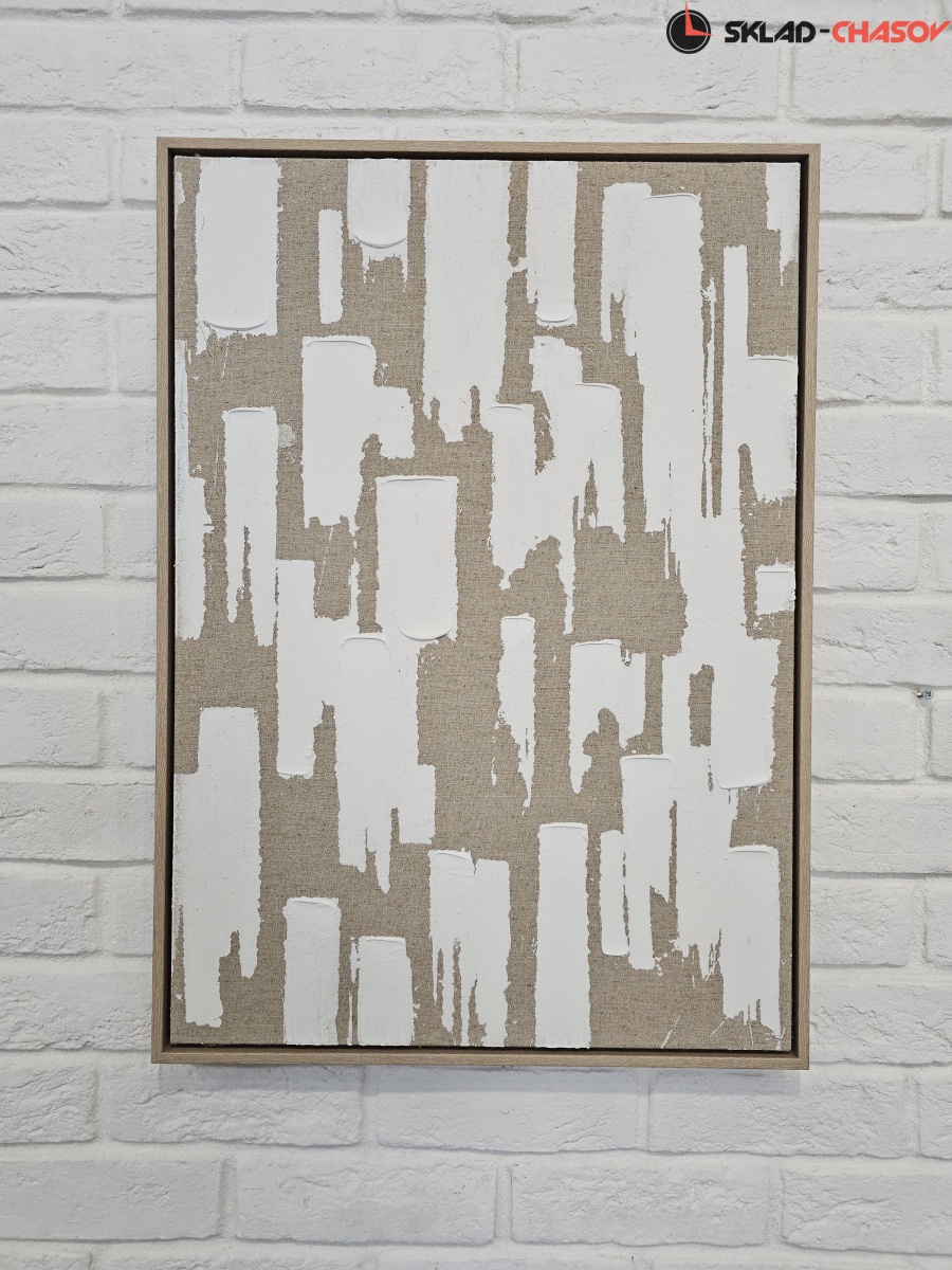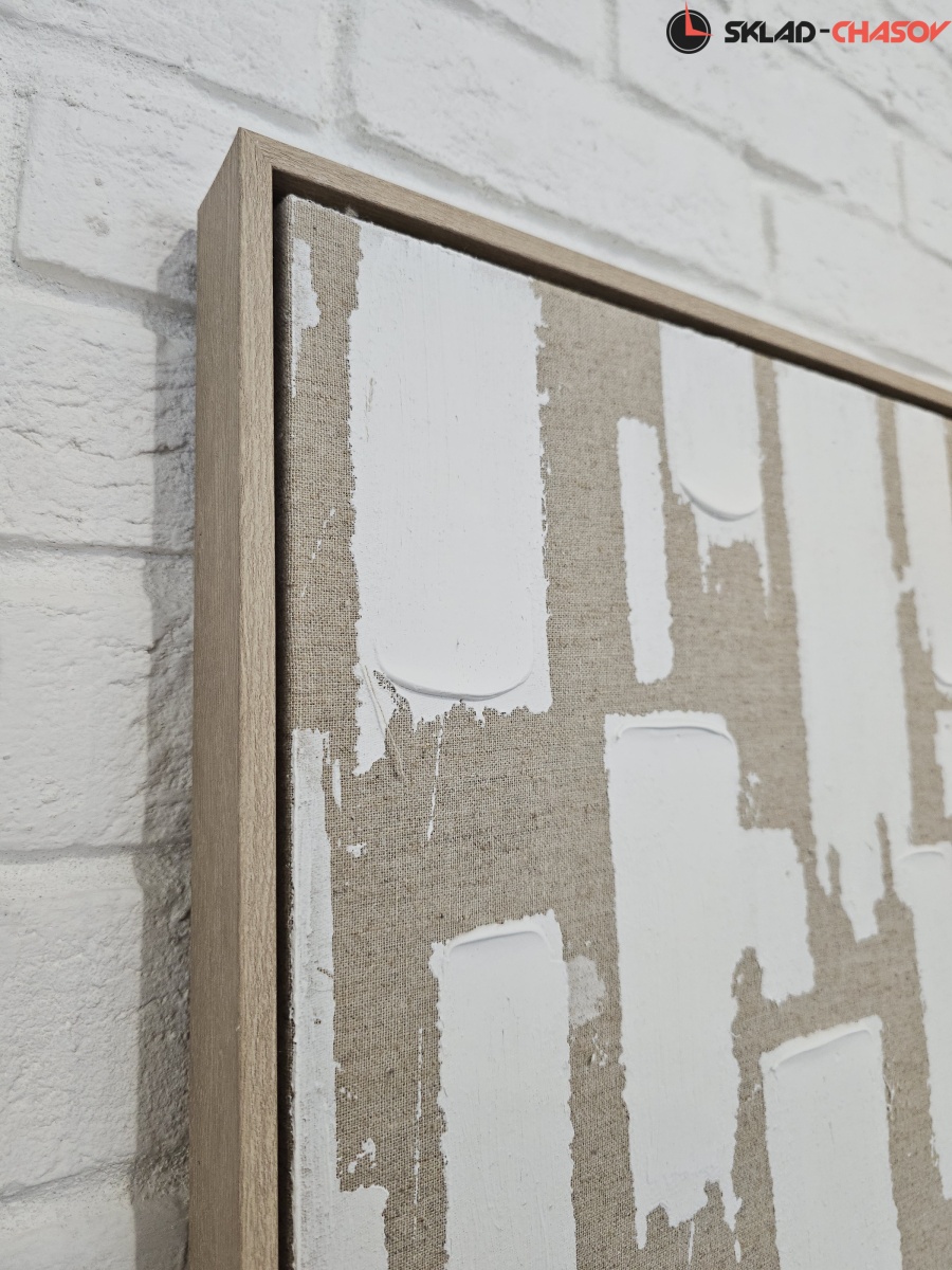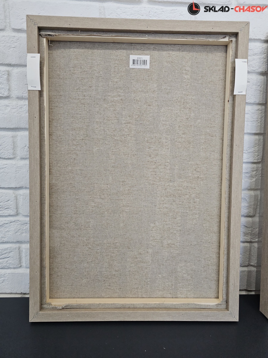 Подрамник из массива дерева, объемная пластиковая рама светло-коричневого цвета с фактурой дерева.