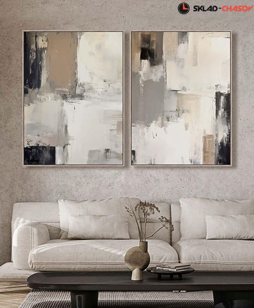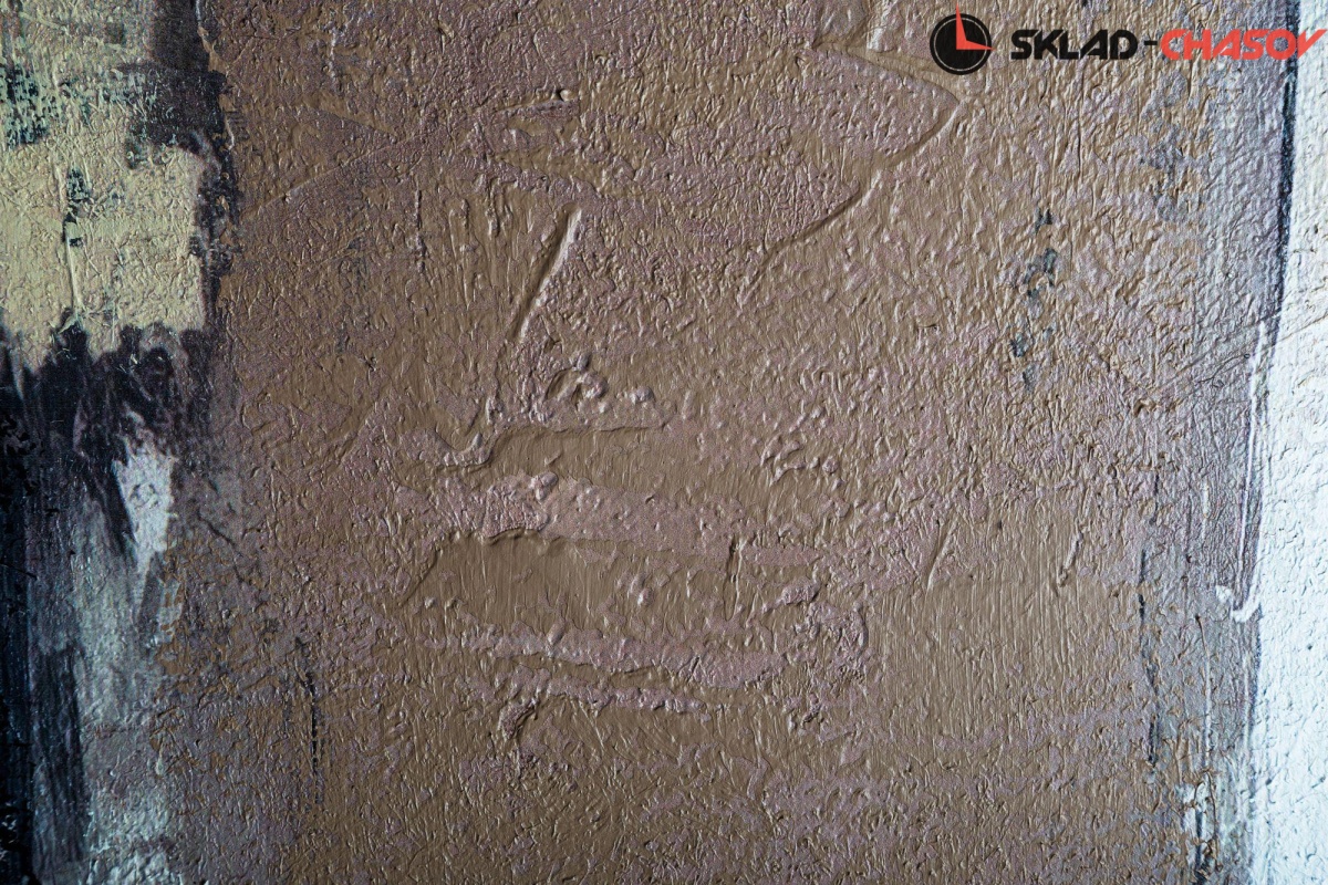 Натуральный холст, на который вручную нанесена и росписана декоративная шпатлевка.