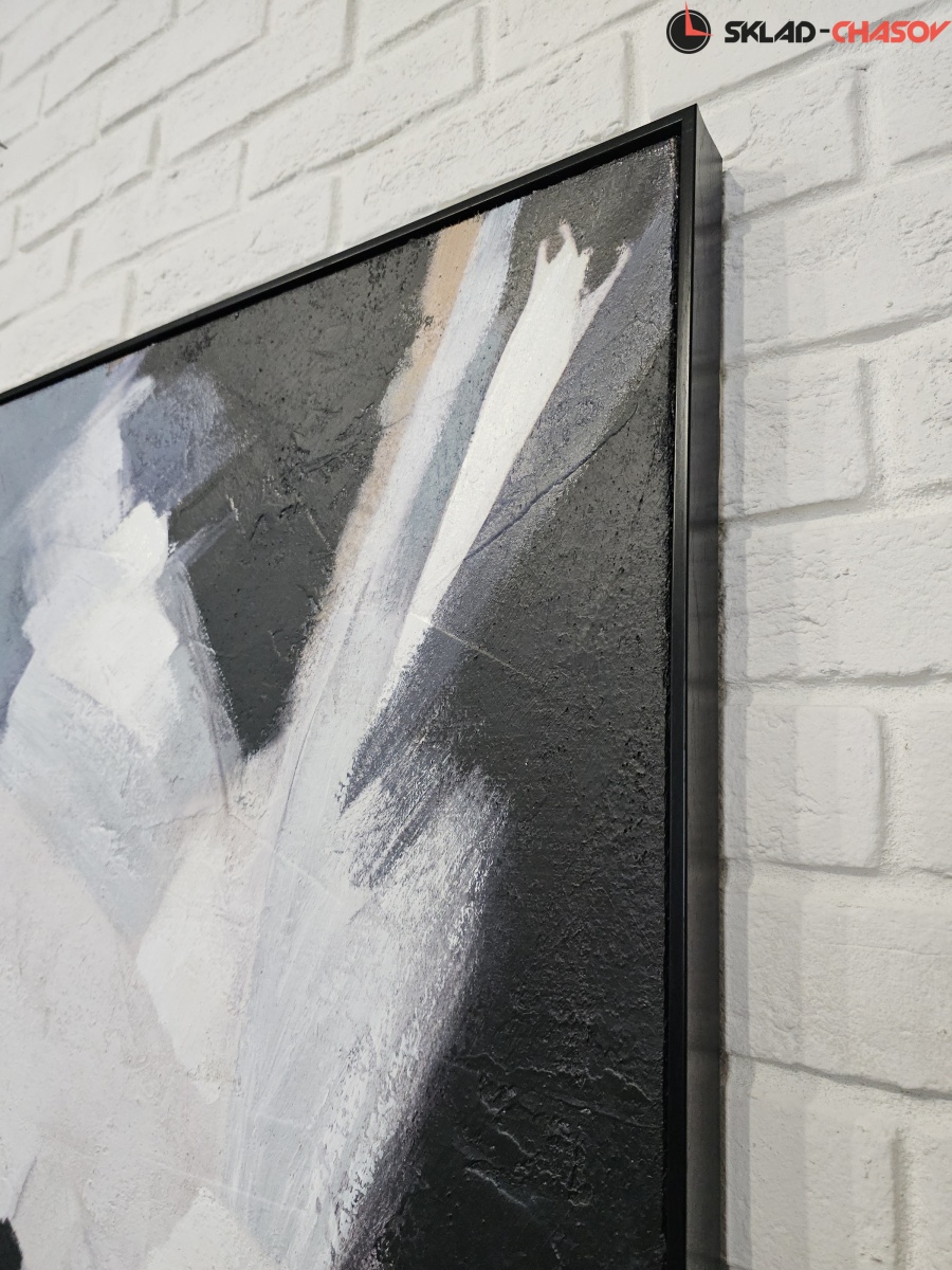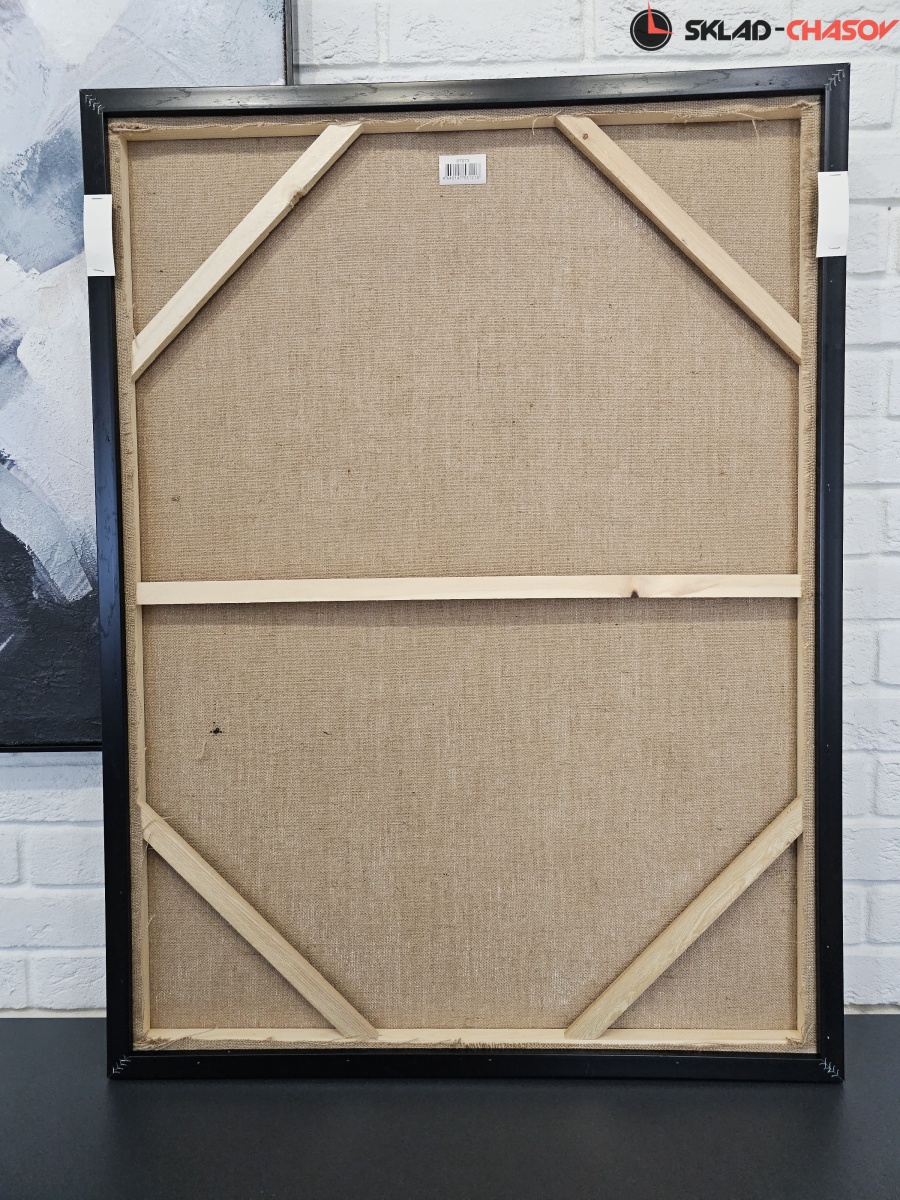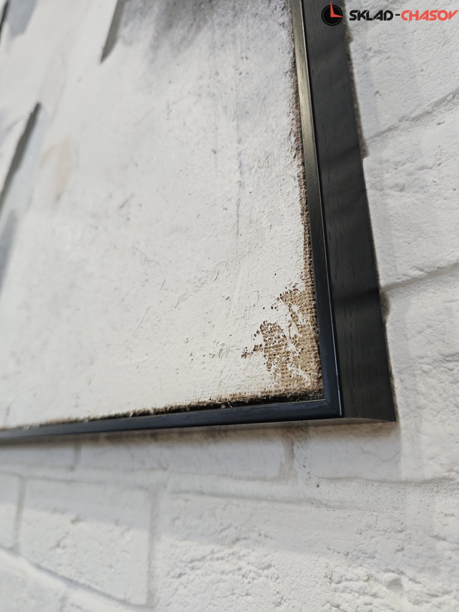 Подрамник из массива дерева, объемная пластиковая рама черного цвета с фактурой дерева.