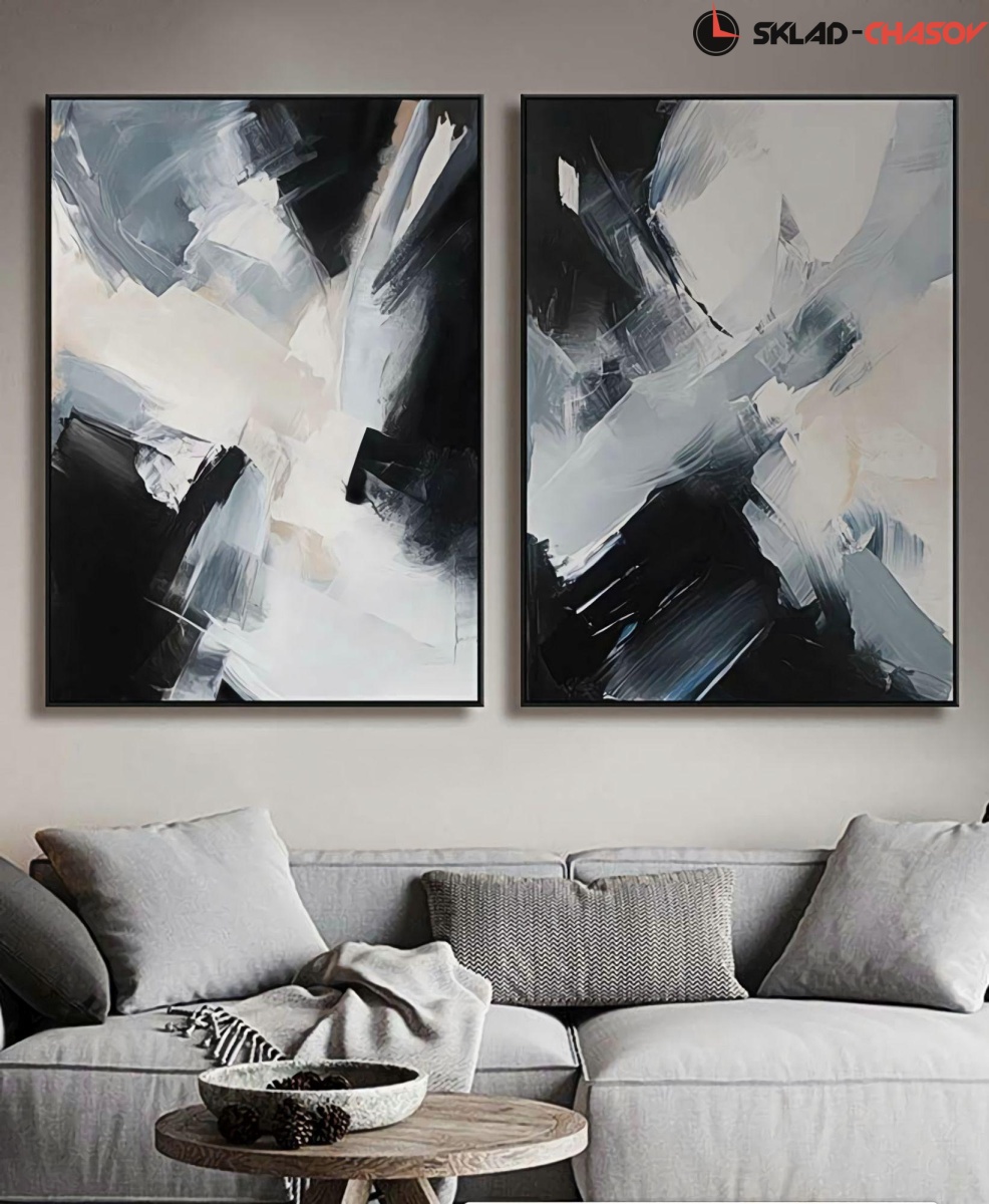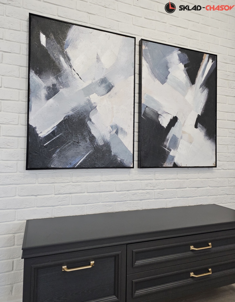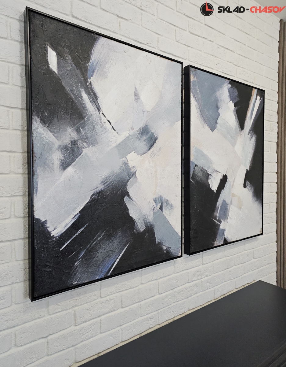 Подрамник из массива дерева, объемная пластиковая рама черного цвета с фактурой дерева.