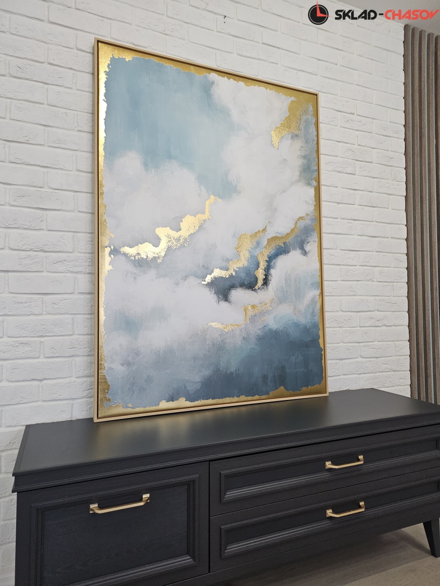 Качественный принт на матовом холсте, отдельный элементы проработаны золотистой фольгой.