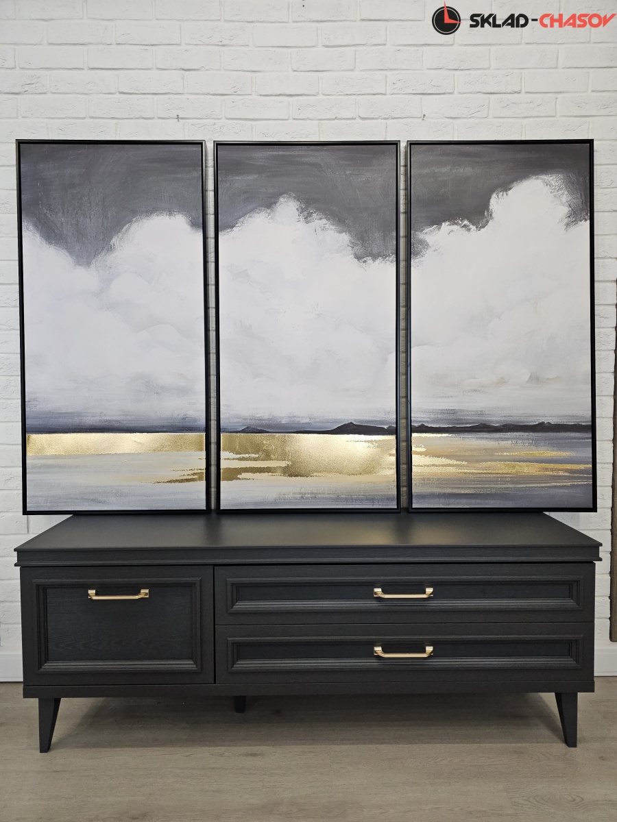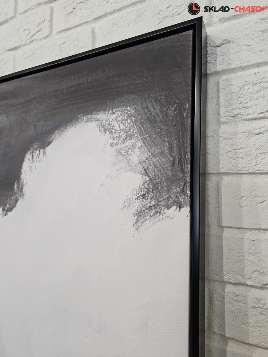 Подрамник выполнен из массива дерева, объемная пластиковая рама черного цвета с фактурой дерева.