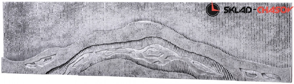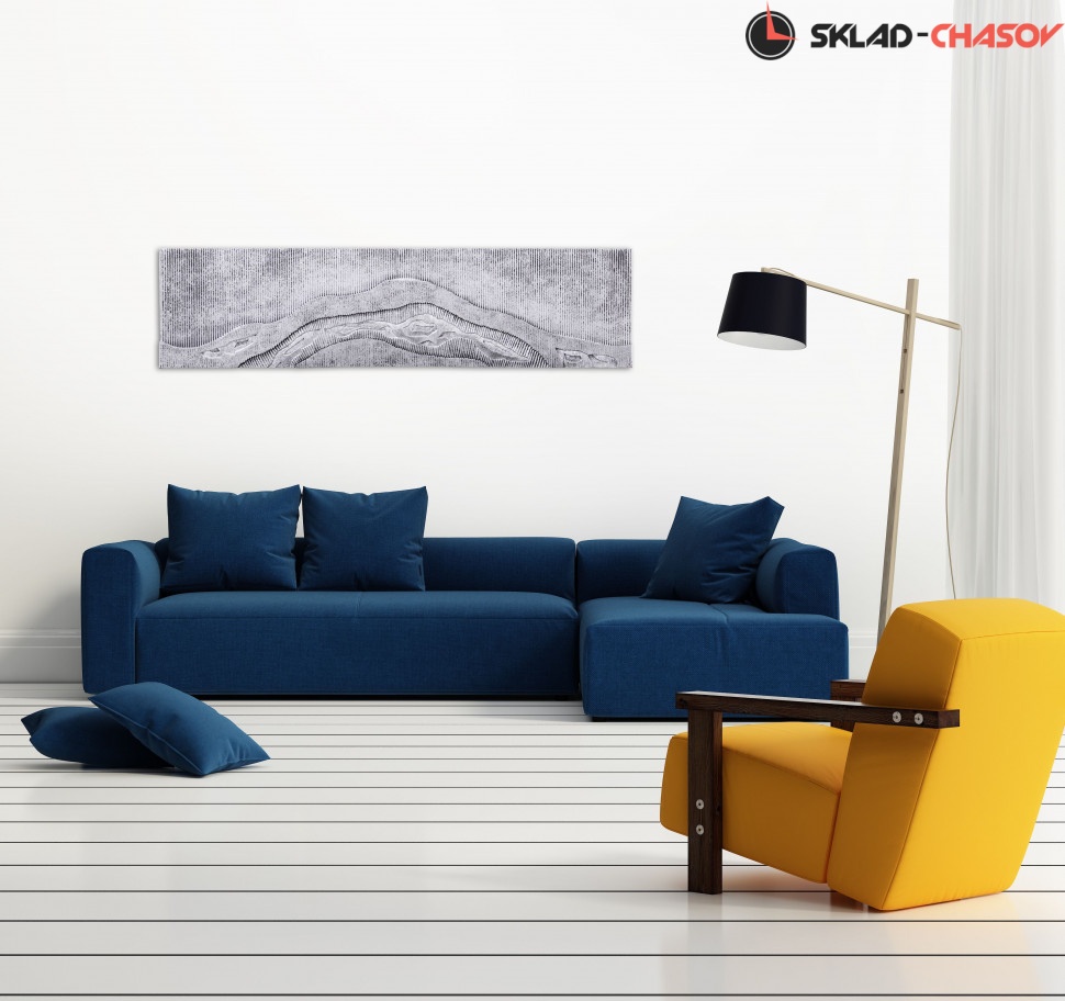 Арт-панно "Река счастья" настенное. Настенное панно из фрезерованного МДФ переменной высоты трех уровней. Серебристое металлизированное покрытие. Размеры: высота 40 см, ширина 160 см, глубина 2.5 см. Артикулы: 30020.