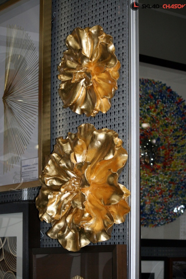 Декор настенный Бегония 3. Артикул 40463. Настенное панно из композитного материала , покрытого поталью, цвет панно - золото.
