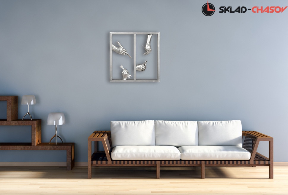 Дизайнерское панно "Руки" в серебристой раме. Высота и ширина 60 см, глубина 12 см. Артикул 21522E.