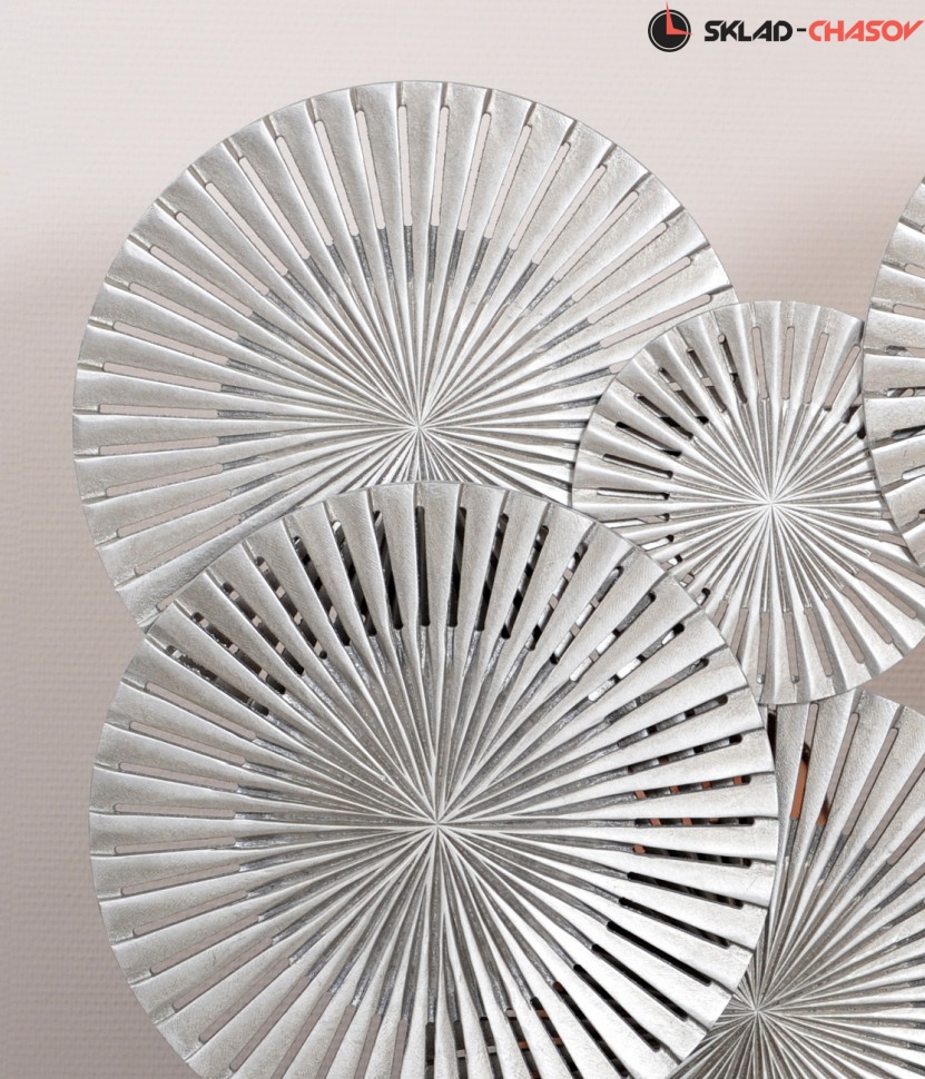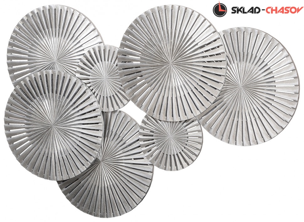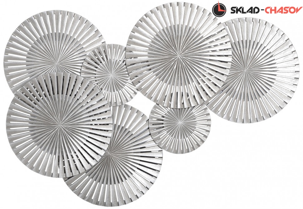Серебристое панно с семью фигурными сферами, расположенными внахлёст.