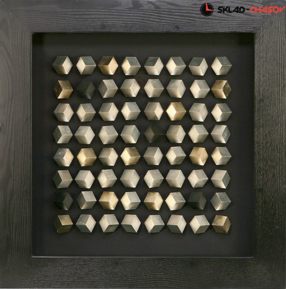 Настенное панно "64 куба" в черной деревянной раме под стеклом, цвет металлик.Артикул 17433.