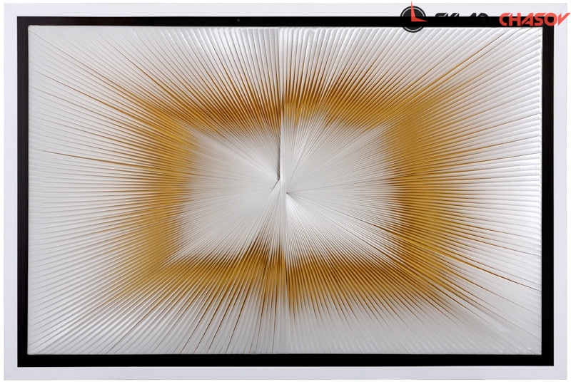 Настенное панно "Иллюзия жёлто-белая" в чёрной раме. Размер: 120 х 80 х 5 см. Артикул: 38389.