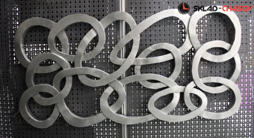 Панно Кольца можно подвешивать вертикально и горизонтально. Это обеспечивается крепёжными петлями на обратной стороне. Панно покрыто металлическим фактурным листом. Каждое панно сделано вручную. Размер: 530 х 1100 х 40 мм.