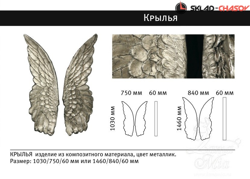 Настенное панно "Крылья" (малые) из композитного материала, цвет металлик. Размер: 1030 х 750 х 60 мм. Артикул 16775S.