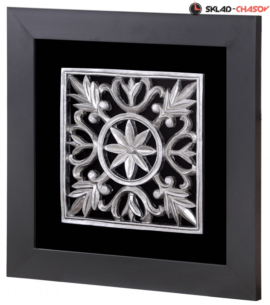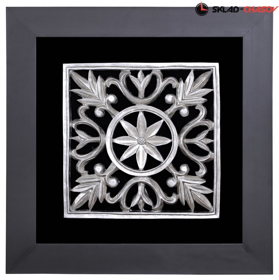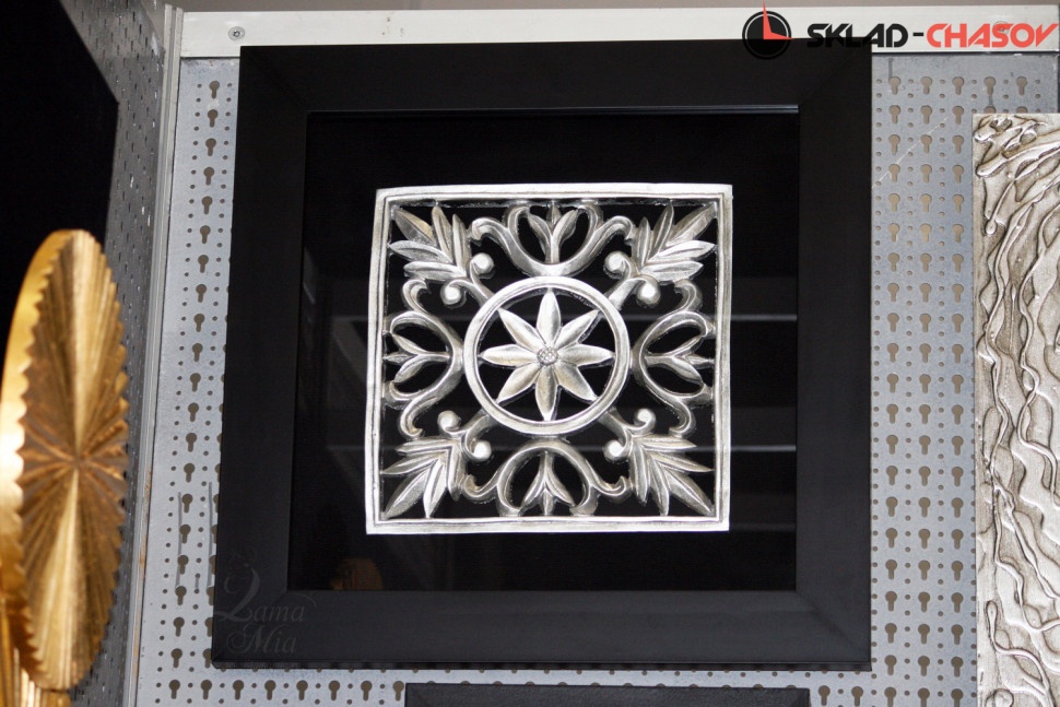 Настенное панно "Квадратный декор" в деревянной раме под стеклом, цвет металлик. Артикул 12652A.