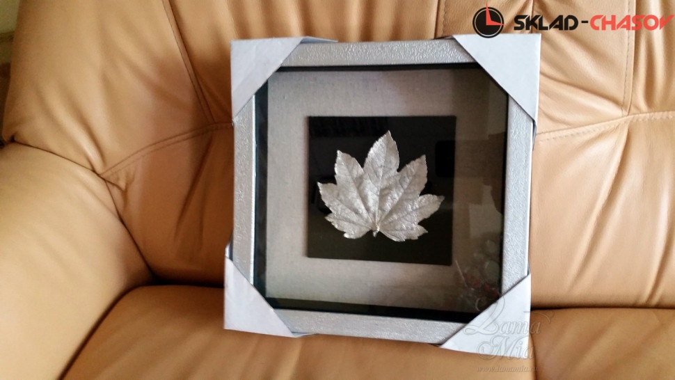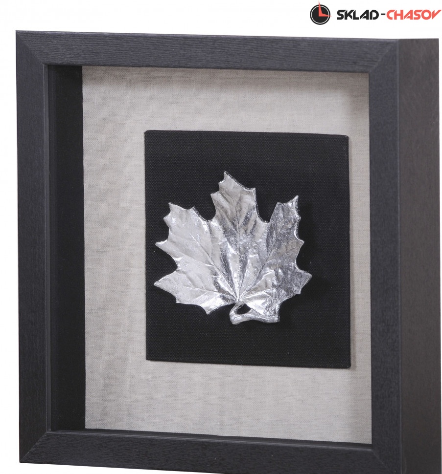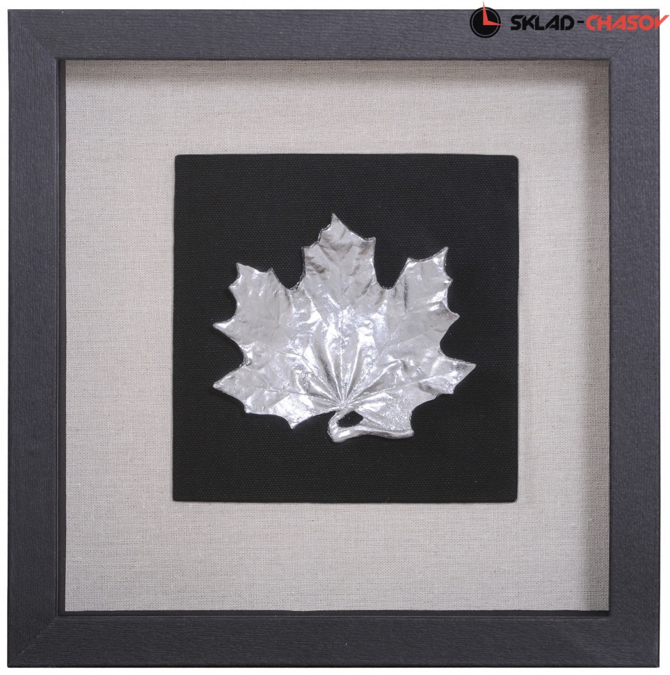Настенное панно "Листья" в раме из дерева, цвет металлик. Артикул 17420A.