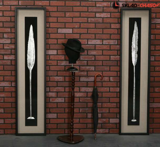 Настенное панно "Старое весло" в черной деревянной раме под стеклом, цвет металлик. Размер: 400 х 1700 х 60 мм. Артикул 18370A.