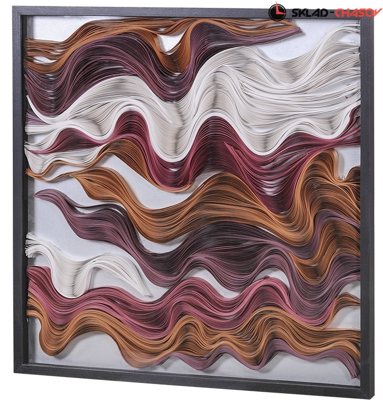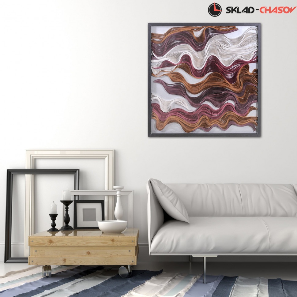 Панно абстрактное настенное "Волны вдохновения" в чёрной деревянной раме. Размеры: высота и ширина 90 см, глубина 8 см. Артикул 30534K.