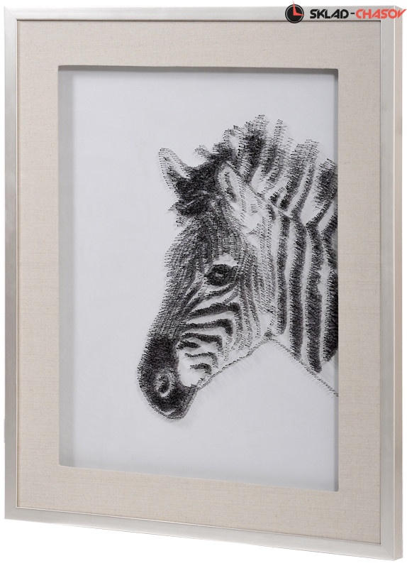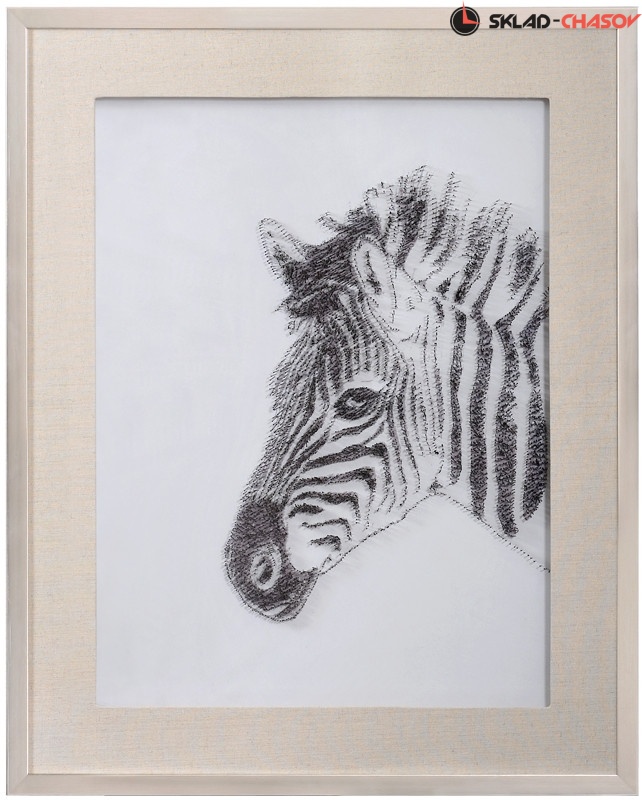 Панно из металла "Зебра" в серебристой деревянной раме. Размер: 100 х 80 х 5 см. Артикул 36926.