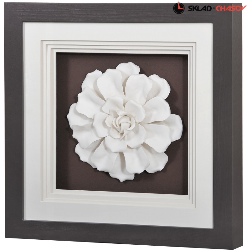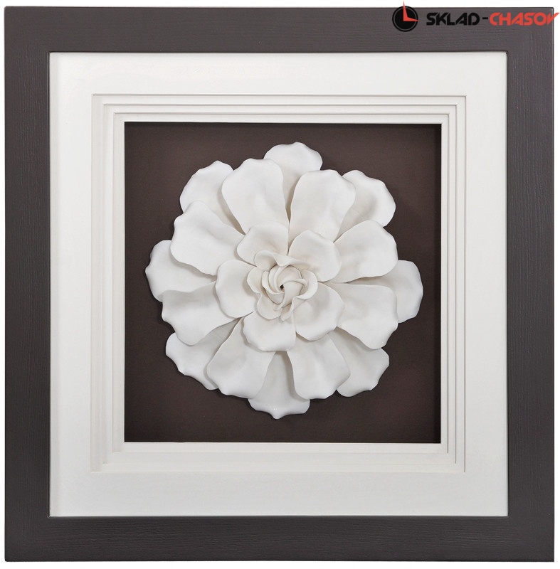 Панно керамическое "Цветок 3" в раме под стеклом. Панно в деревянной раме кофейного цвета. Высота 60 см, ширина 60 см, глубина 10 см. Артикул 38386C.