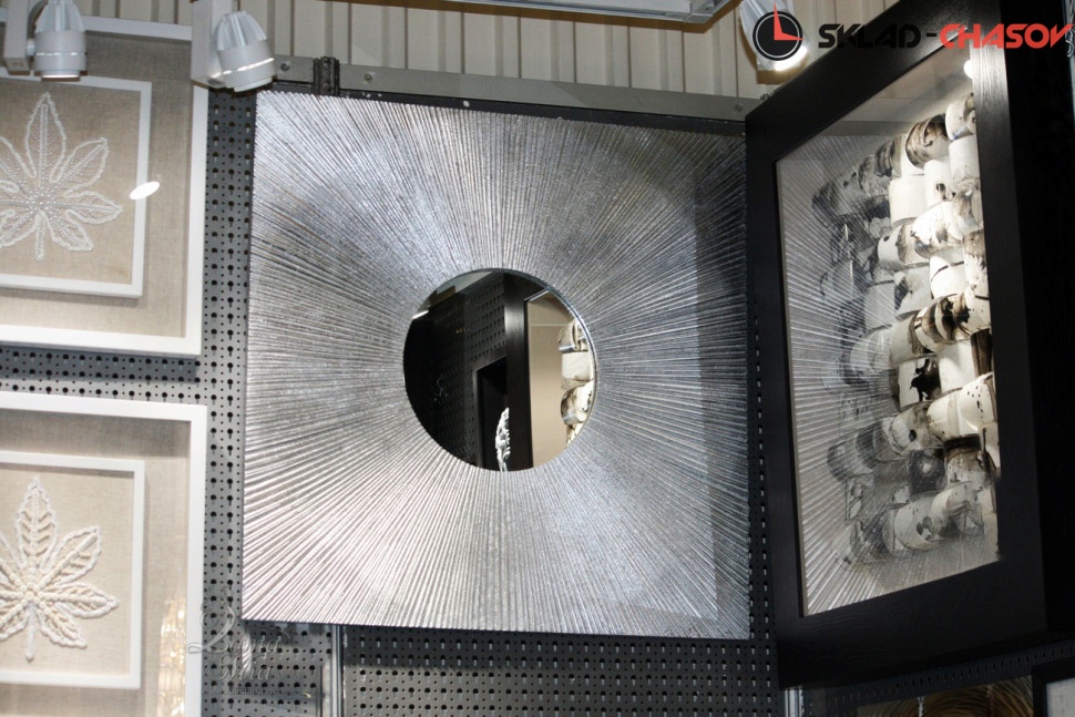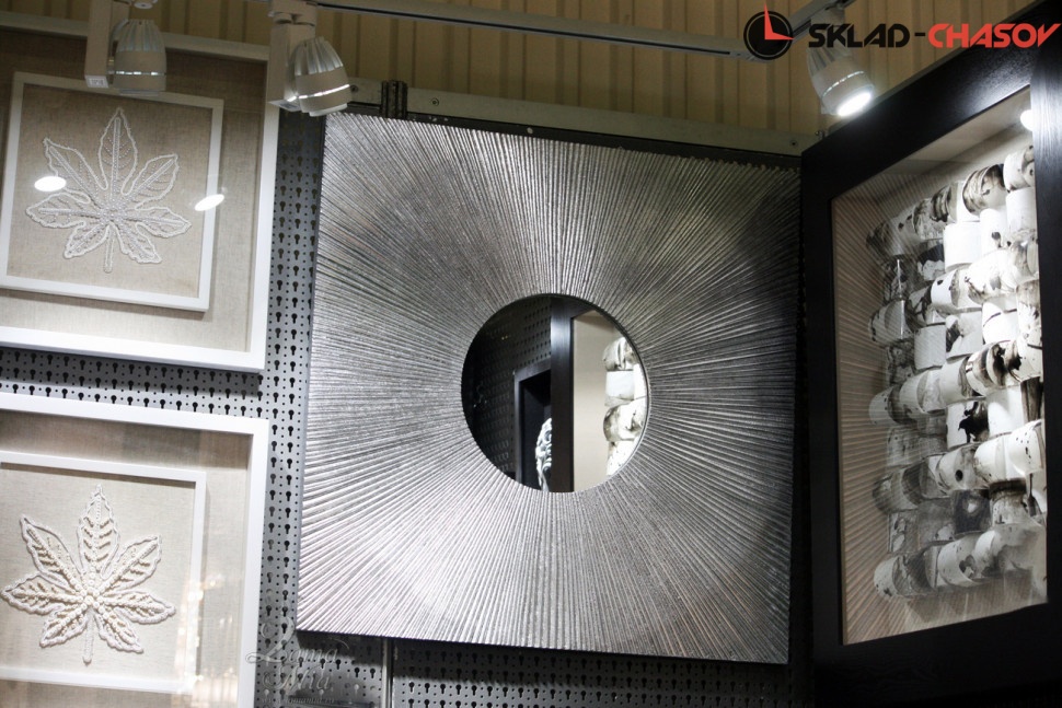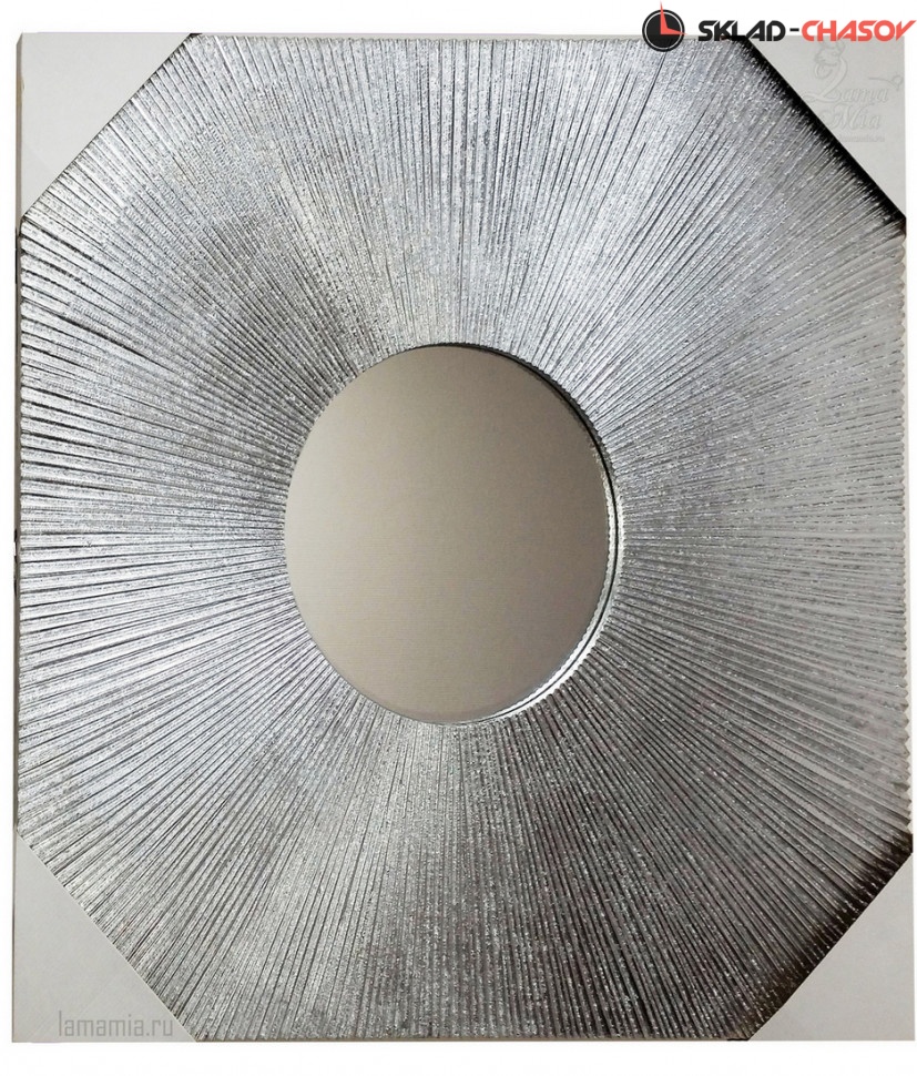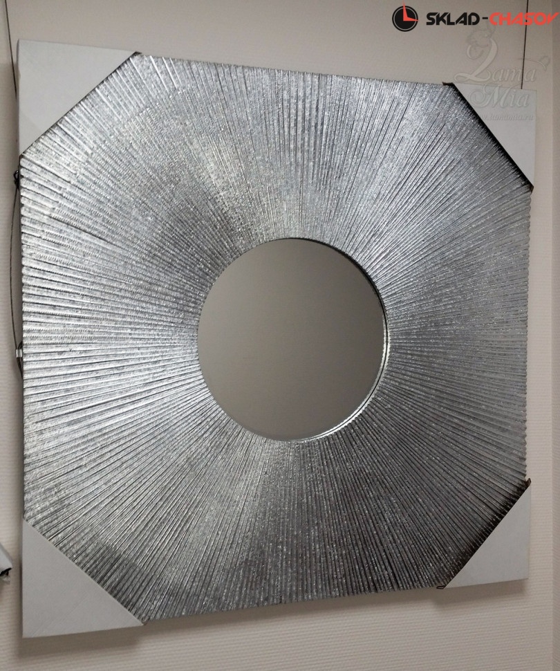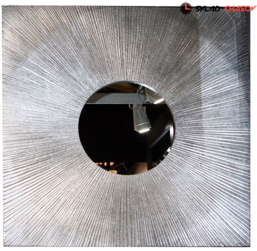 Панно Магия круга серебристое с зеркалом. Высота и ширина 80 см, глубина 3 см. Артикул 37259S.