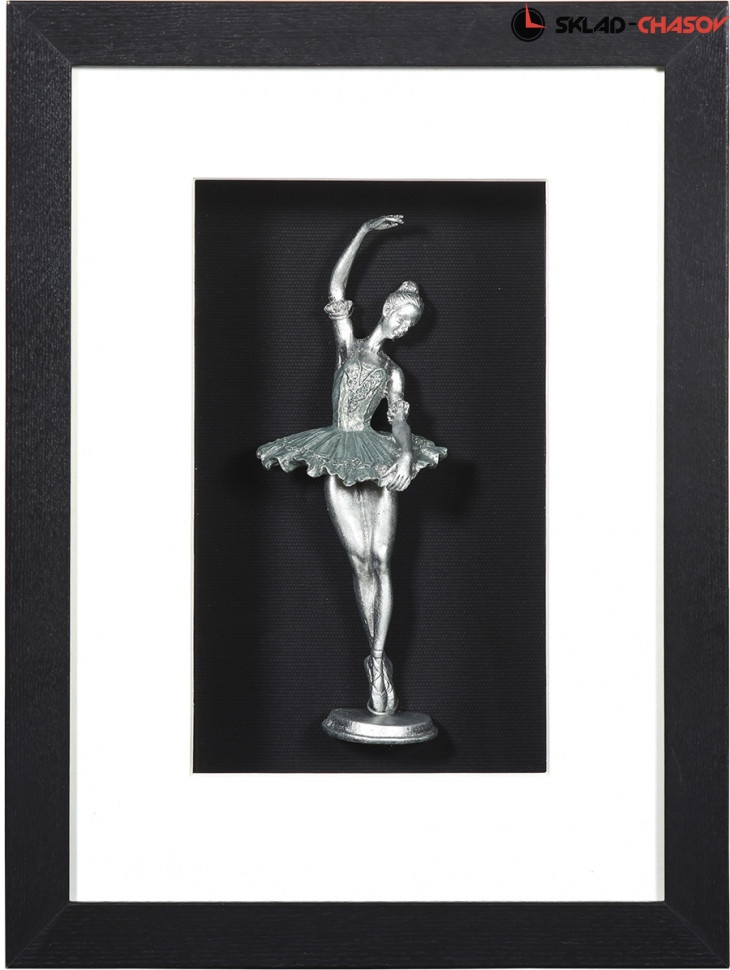 Панно на стену "Балет 1" в чёрной деревянной раме. Ширина 30 см, высота 40 см. Артикул 46139A.