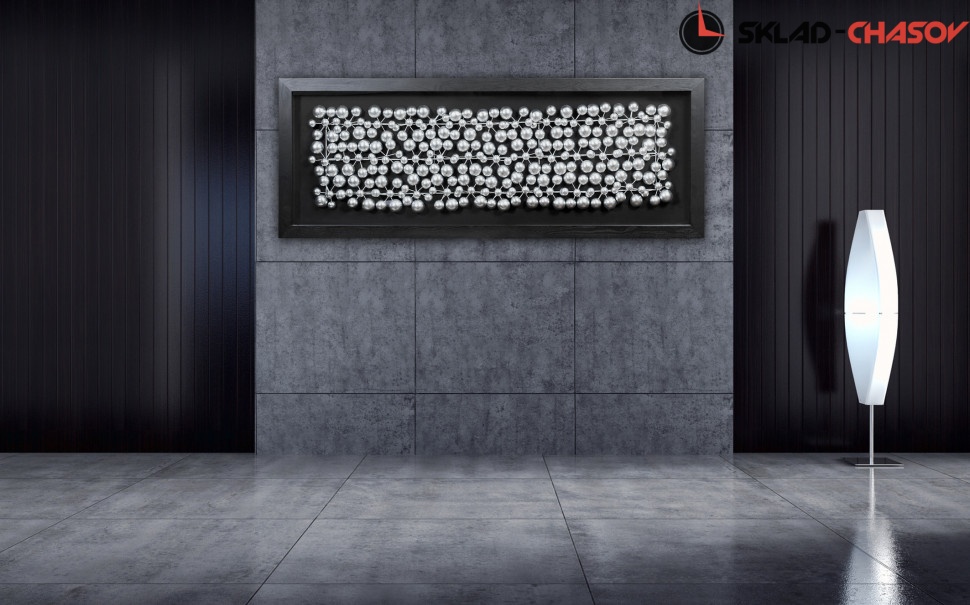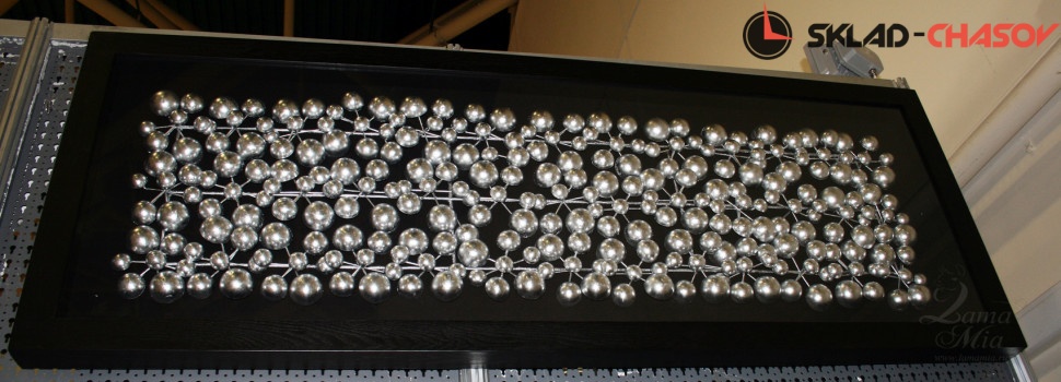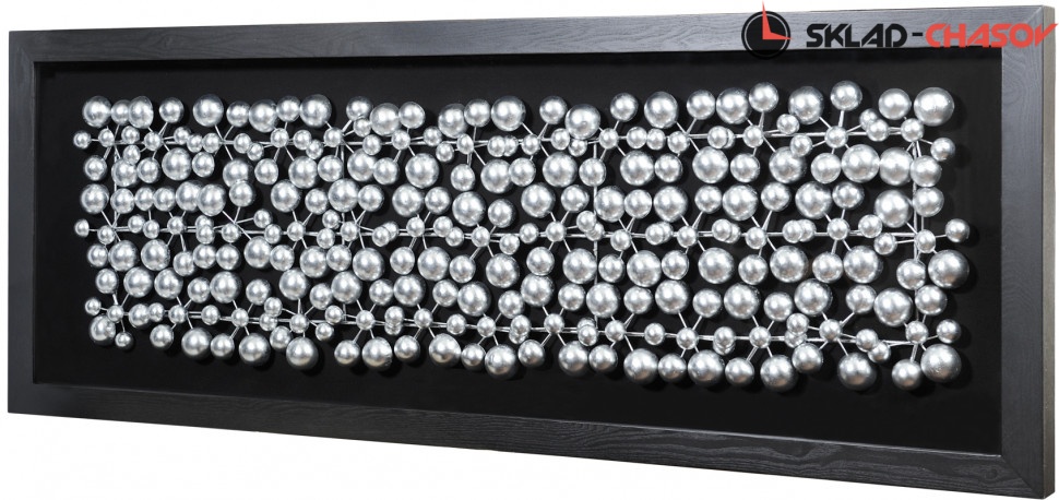 Панно настенное "Молекулы" в черной деревянной раме под стеклом. Высота 60 см, ширина 160 см. Артикул 30112.