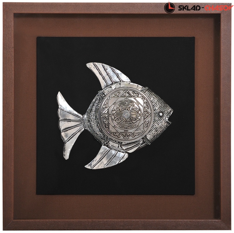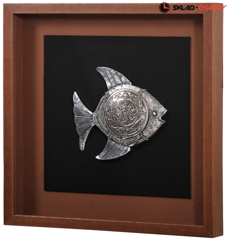 Панно настенное "Рыбка 1" в коричневой деревянной раме под стеклом, цвет металлик. Размер: 50 х 50 х 4.5 см. Артикул 36936A.