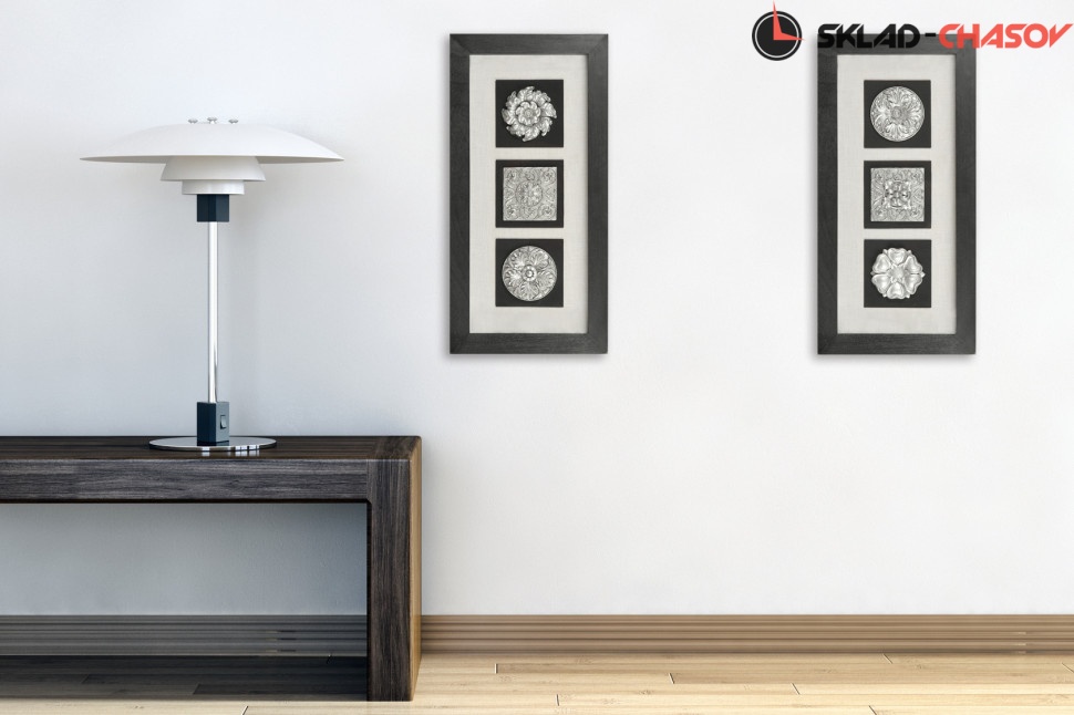 Панно настенное "Вертикальный декор 2" в чёрной деревянной шпонированной раме. Размеры: высота 80 см, ширина 40 см, глубина 5 см. Артикул 17339B.