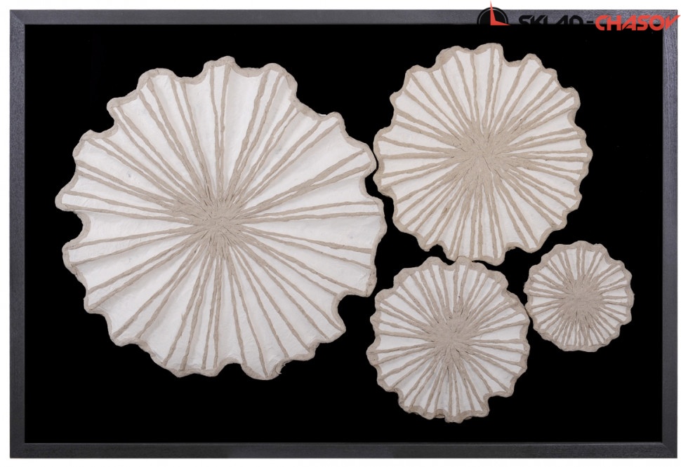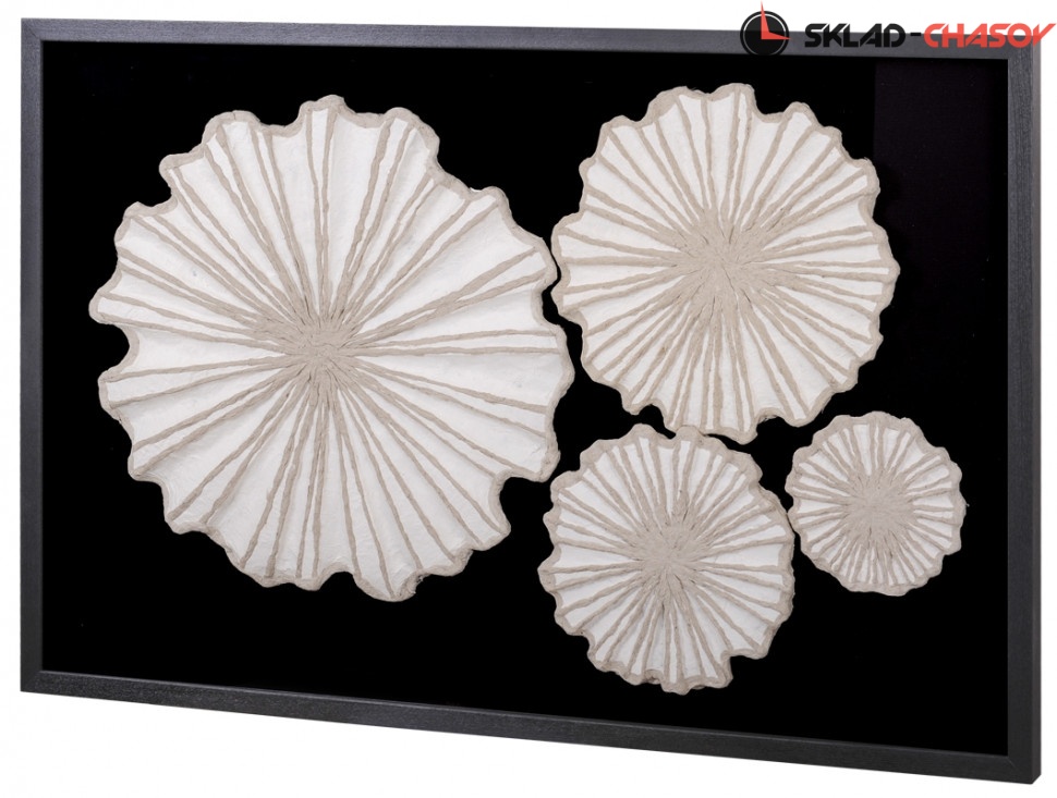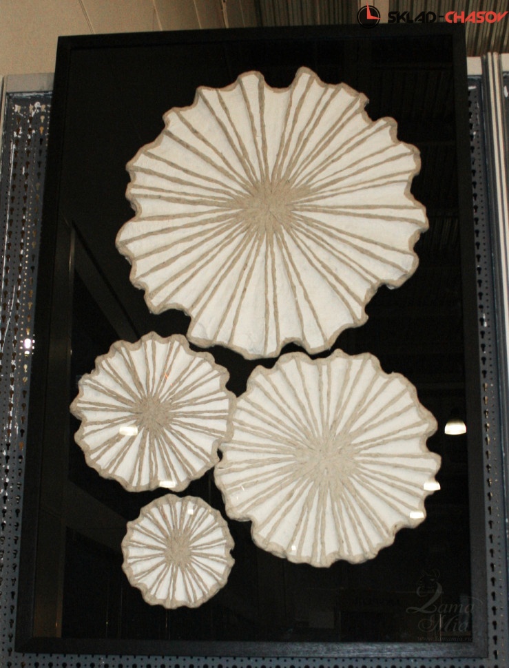 Композиция панно состоит из четырёх оригинальных круглых фигур из пресованной бумаги бежевого цвета.