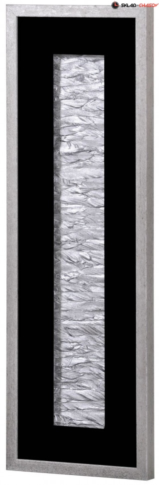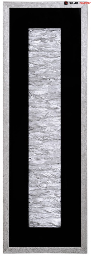 Панно оригинальное "Переливы 2". Настенное панно из перьев серебряного цвета в чёрной шпонированной раме под стеклом. Размеры: высота 90 см, ширина 30 см, глубина 3.5 см. Артикулы: 35933B.