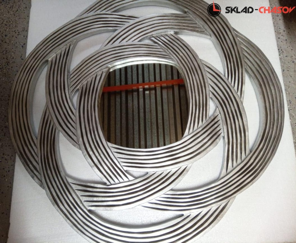 Панно с зеркалом Орбиты. Артикул 22015. Панно "Орбиты" - настенное панно из фрезерованного МДФ с зеркалом. Цвет панно серебро.
