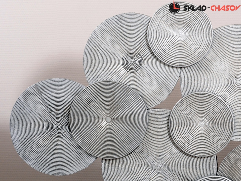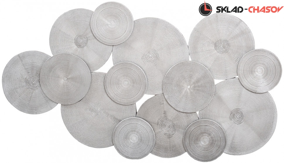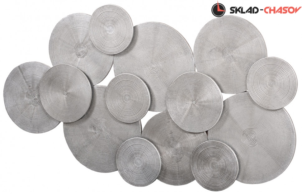 Панно серое "Серебряные диски". Высота 68 см, ширина 128 см, глубина 6.5 см. Артикул 20037.
